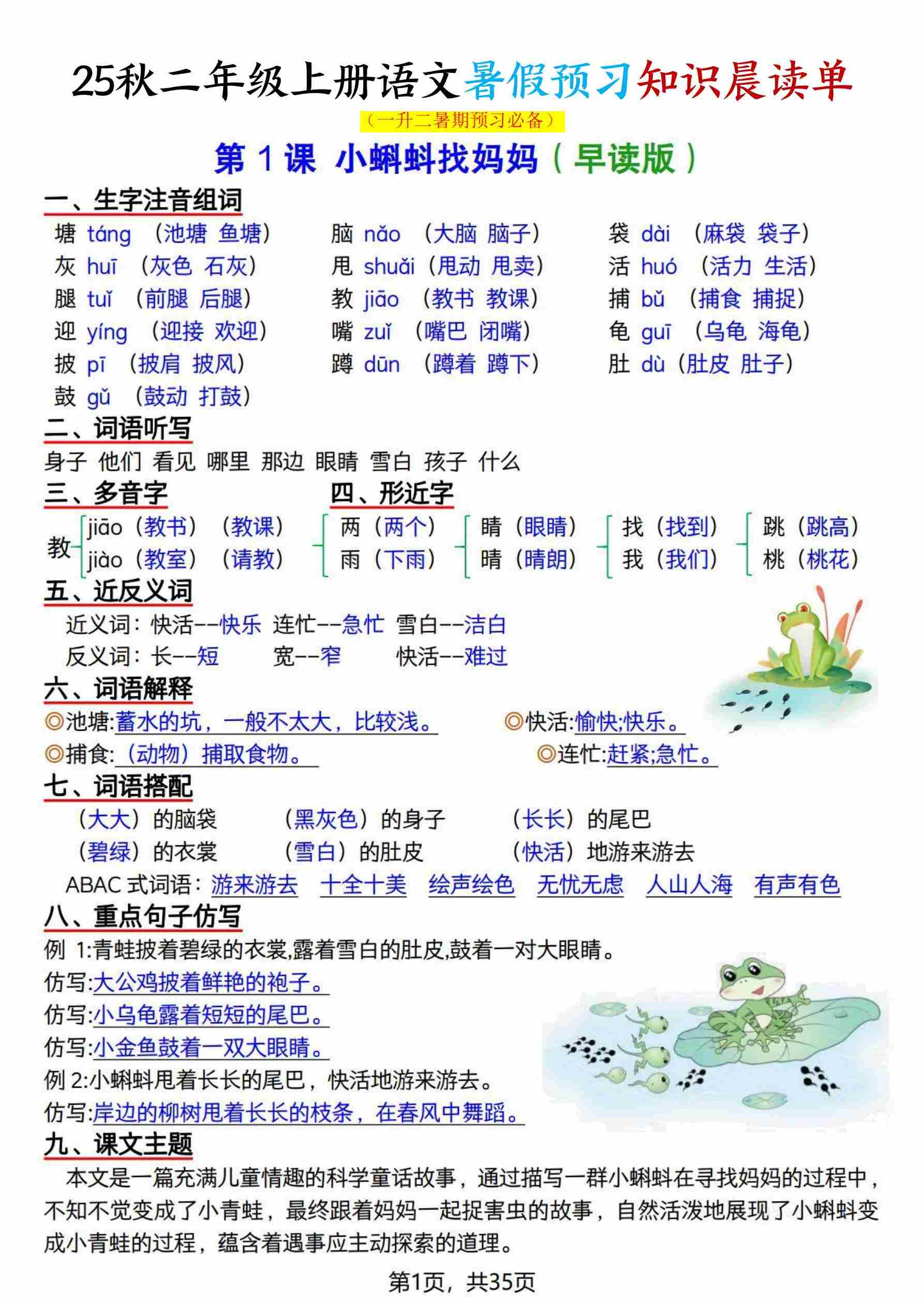 二(上)语文【25秋-暑假预习知识晨读单(35页)】