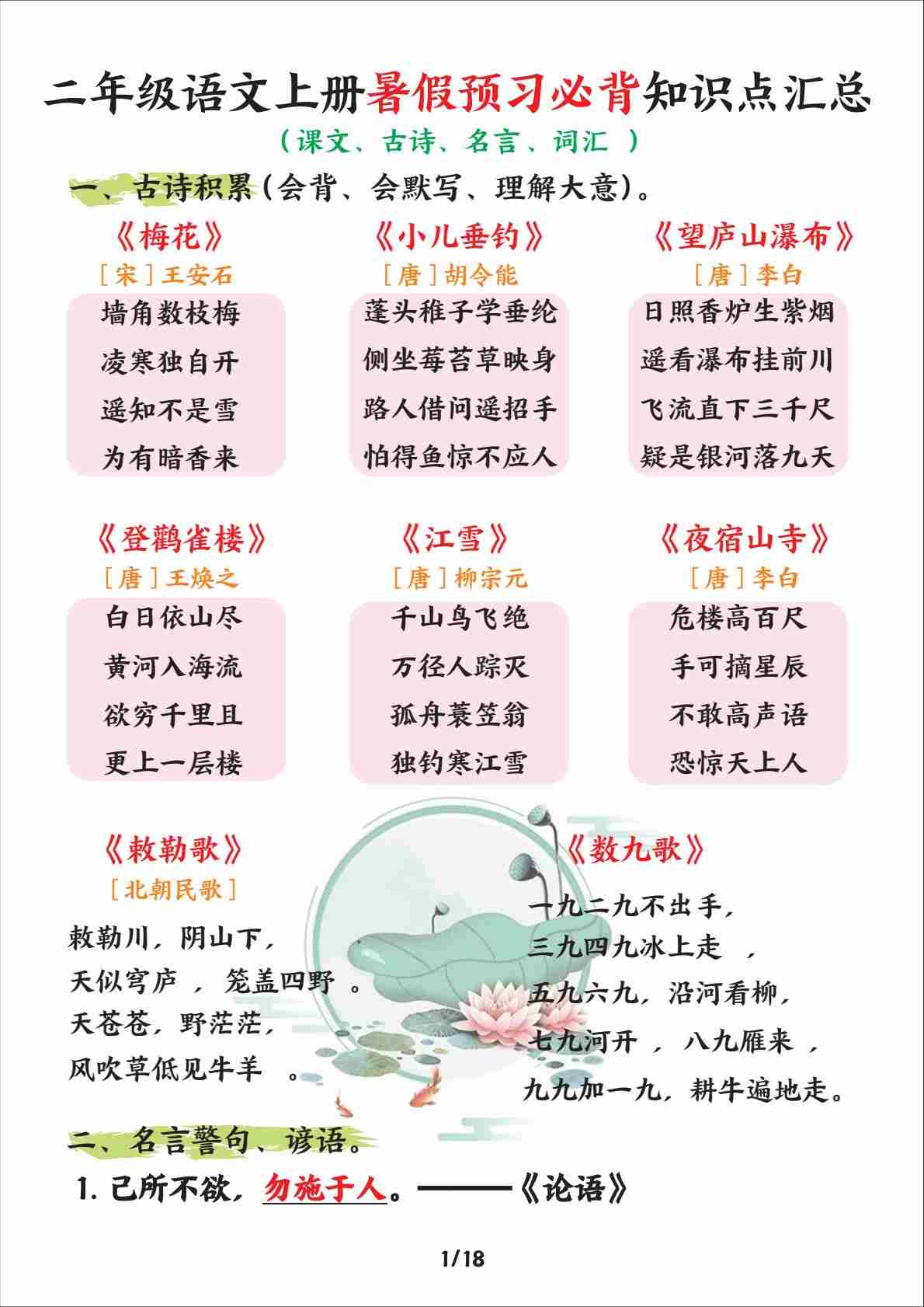 二(上)语文【暑假预习必背知识点汇总】