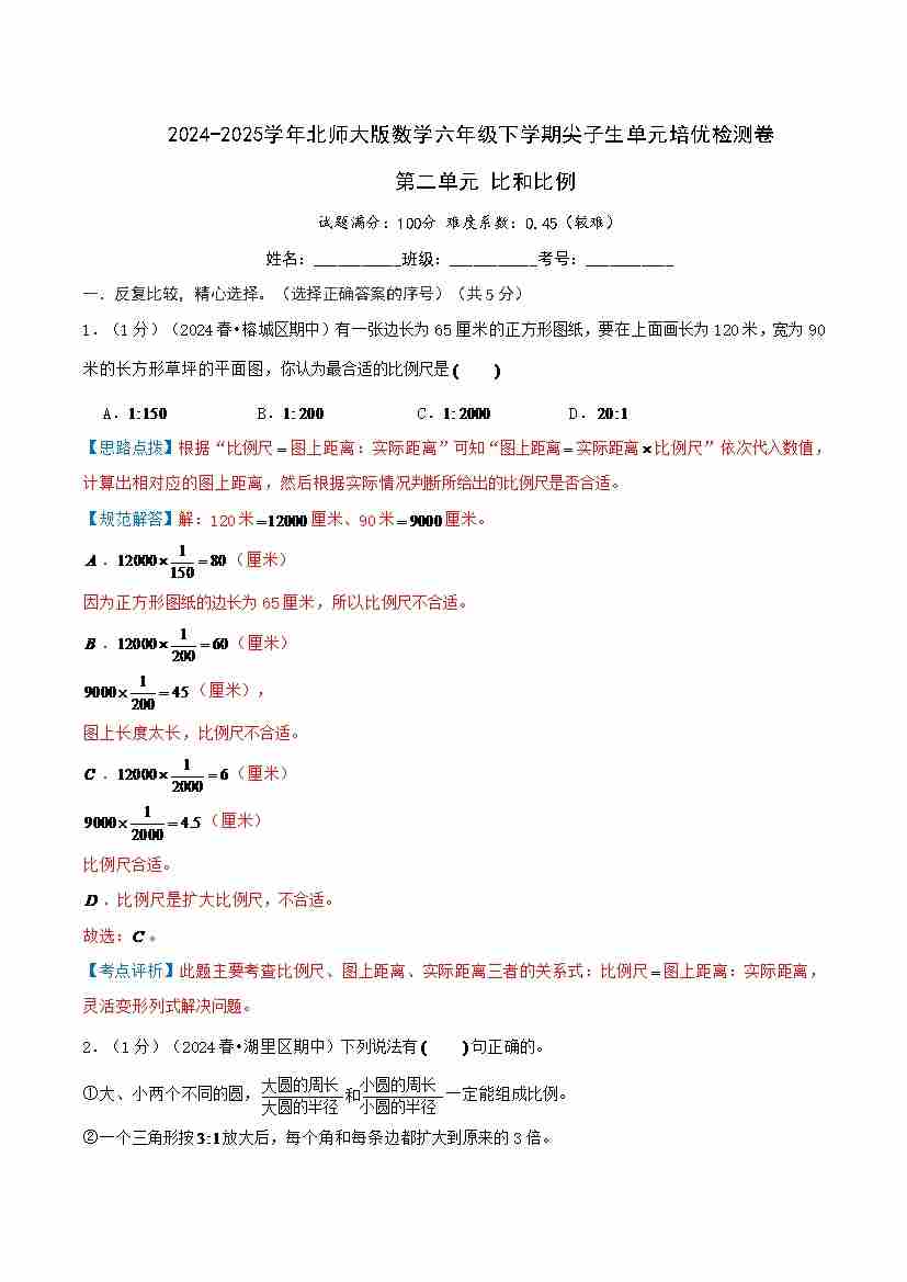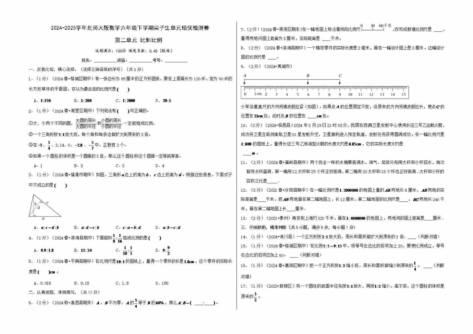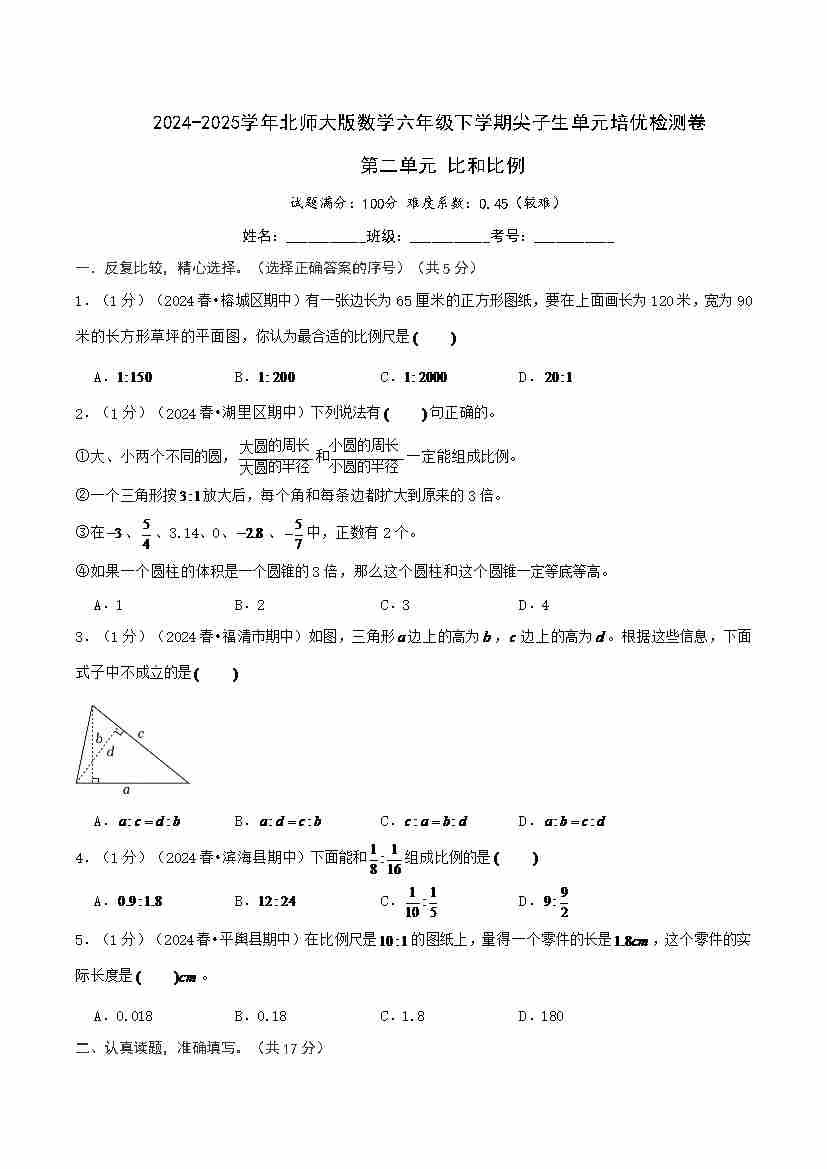 第三单元 圆柱和圆锥-(真题汇编)A3原卷