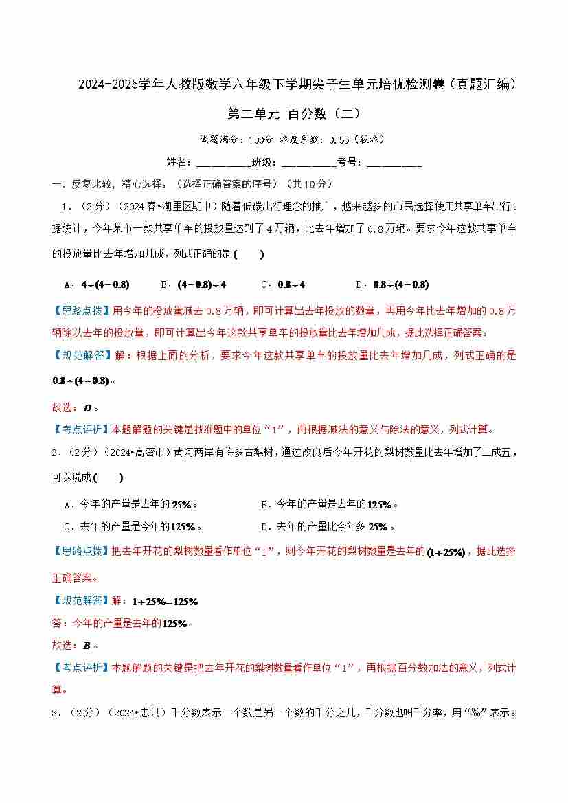 第二讲 百分数(二)(单元讲义)-(人教版)教师版