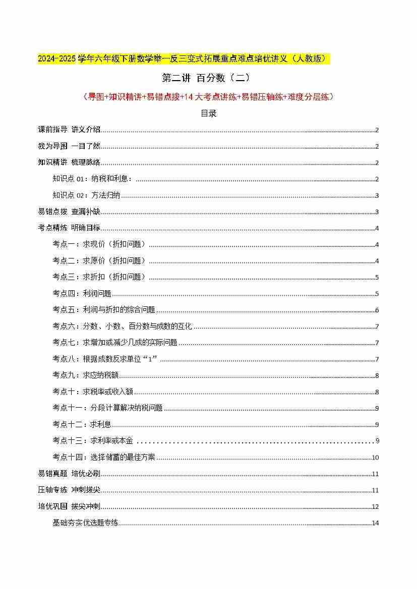 第二讲 百分数(二)(单元讲义)-(人教版)学生版