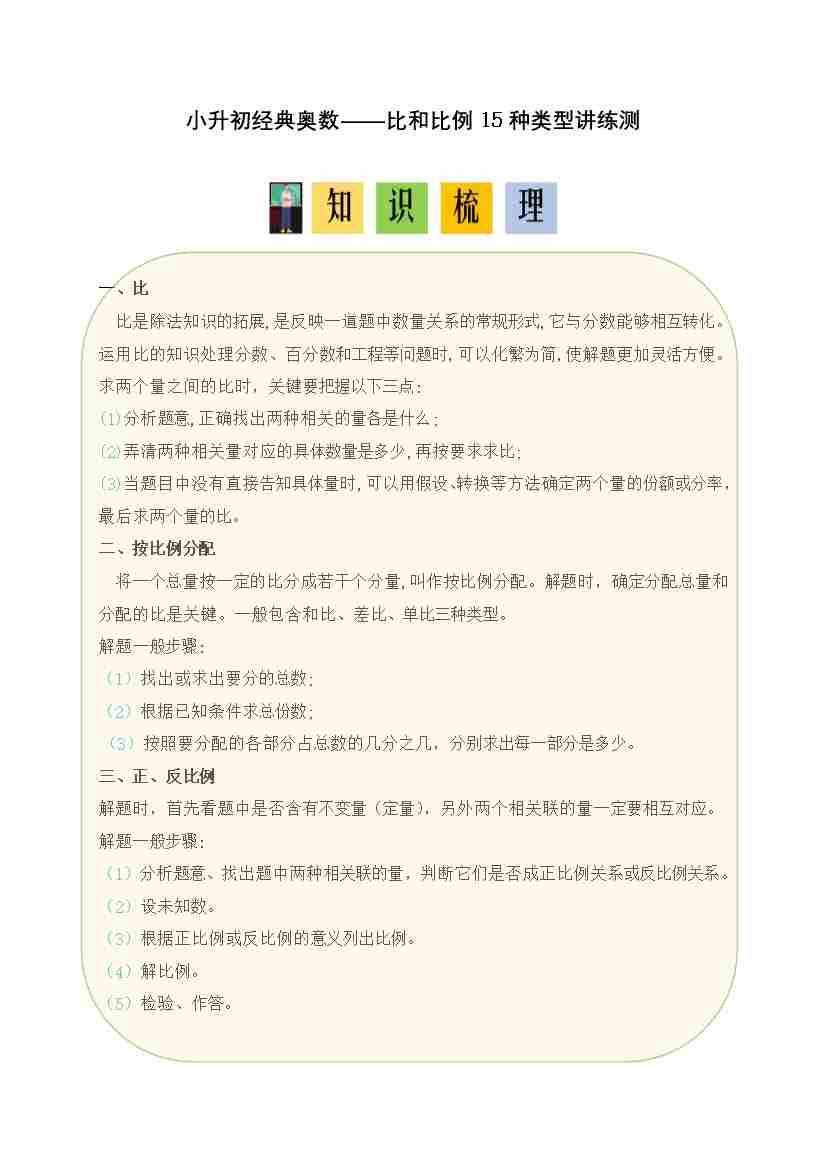 经典奥数-比和比例15种类型精讲精练-小升初奥数应用题讲义