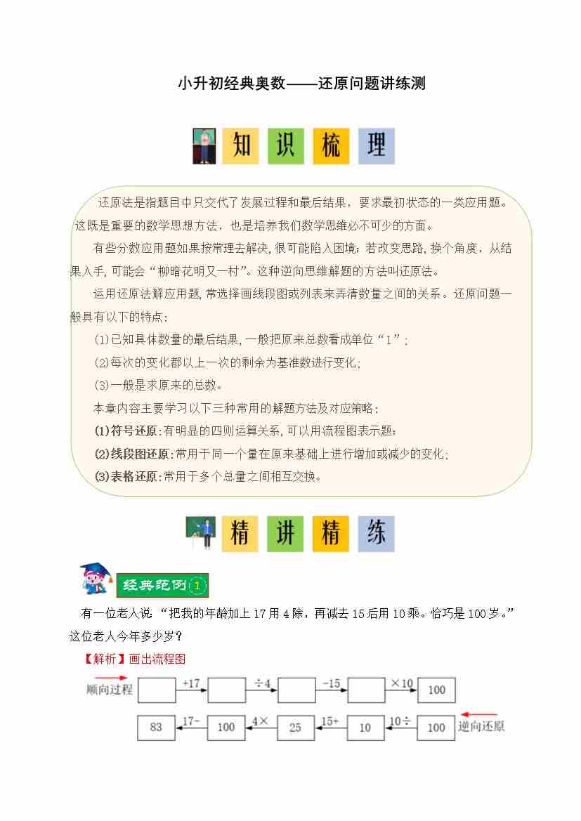 经典奥数-还原问题4种类型精讲精练-小升初奥数应用题讲义