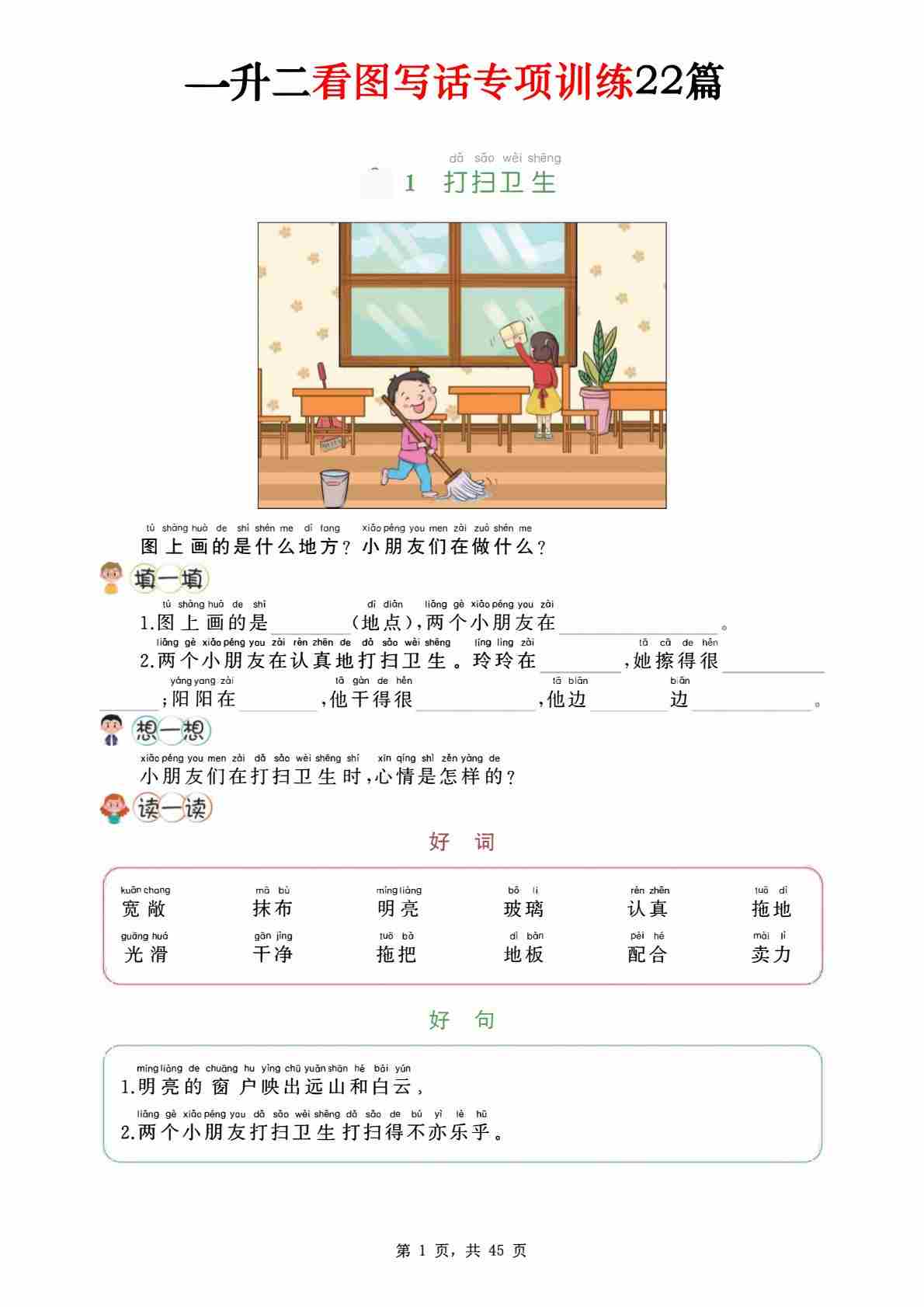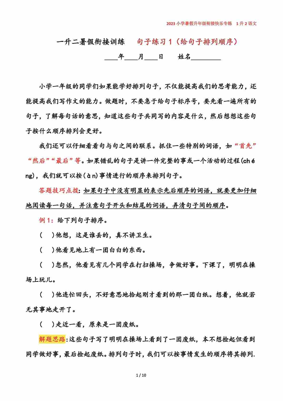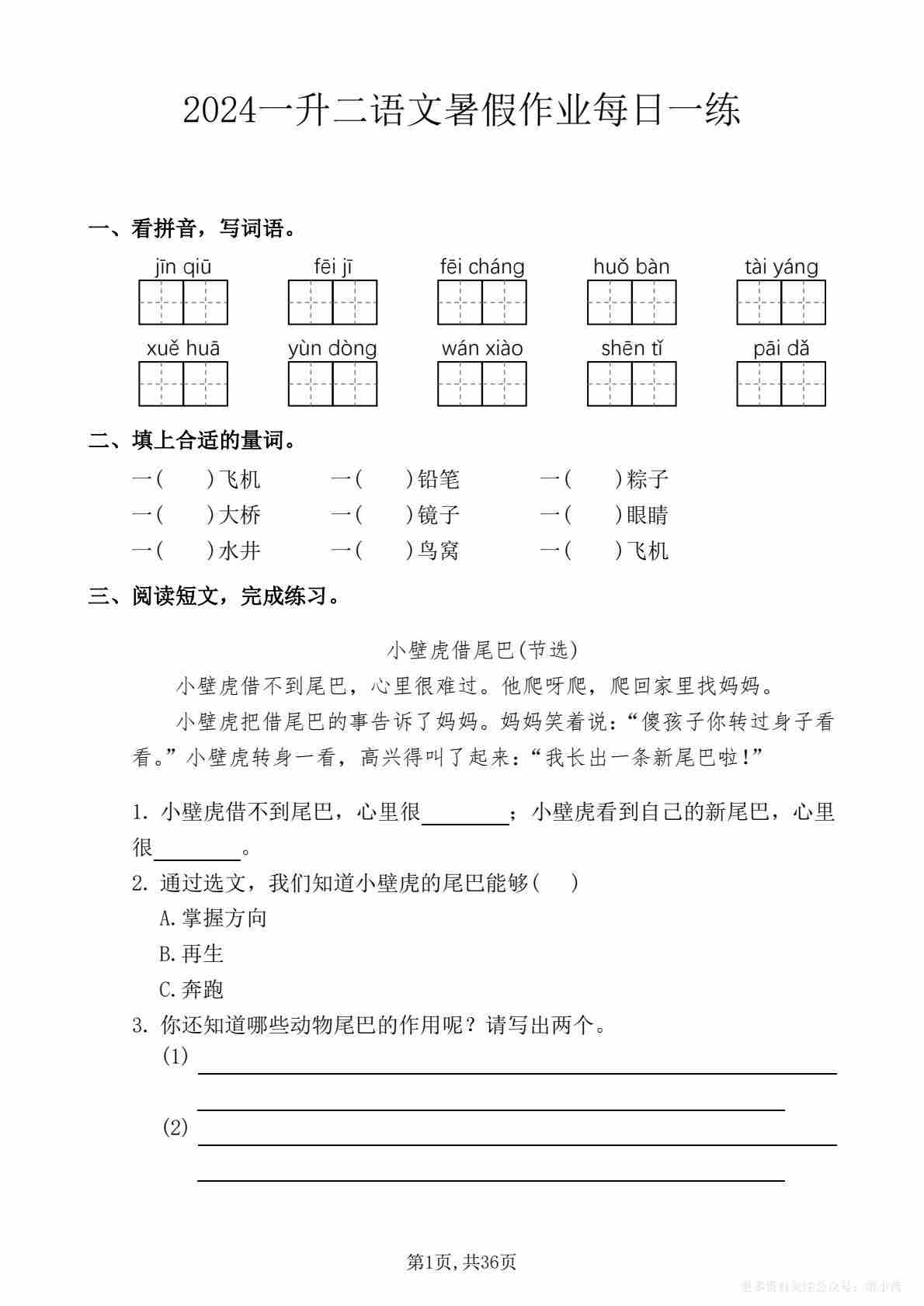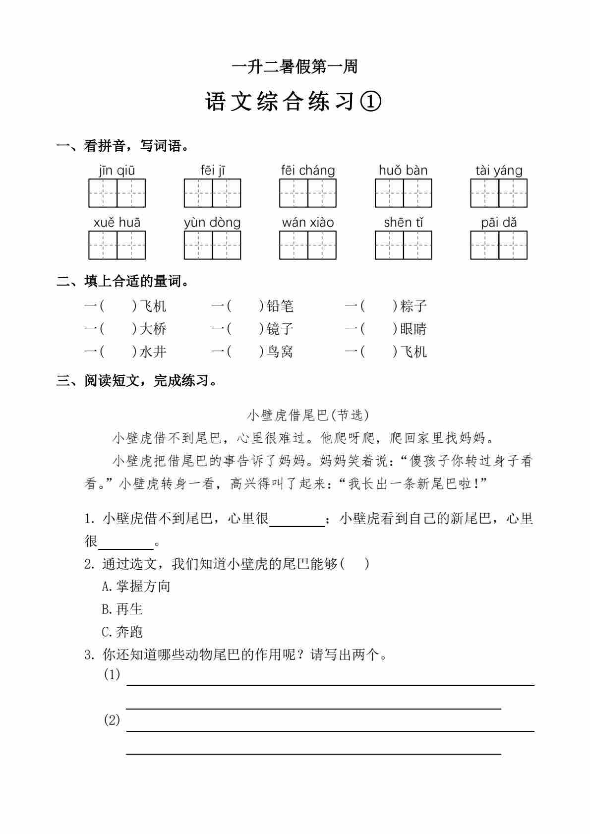 一升二年级语文暑假预习必备《生字拼音、笔顺、组词》