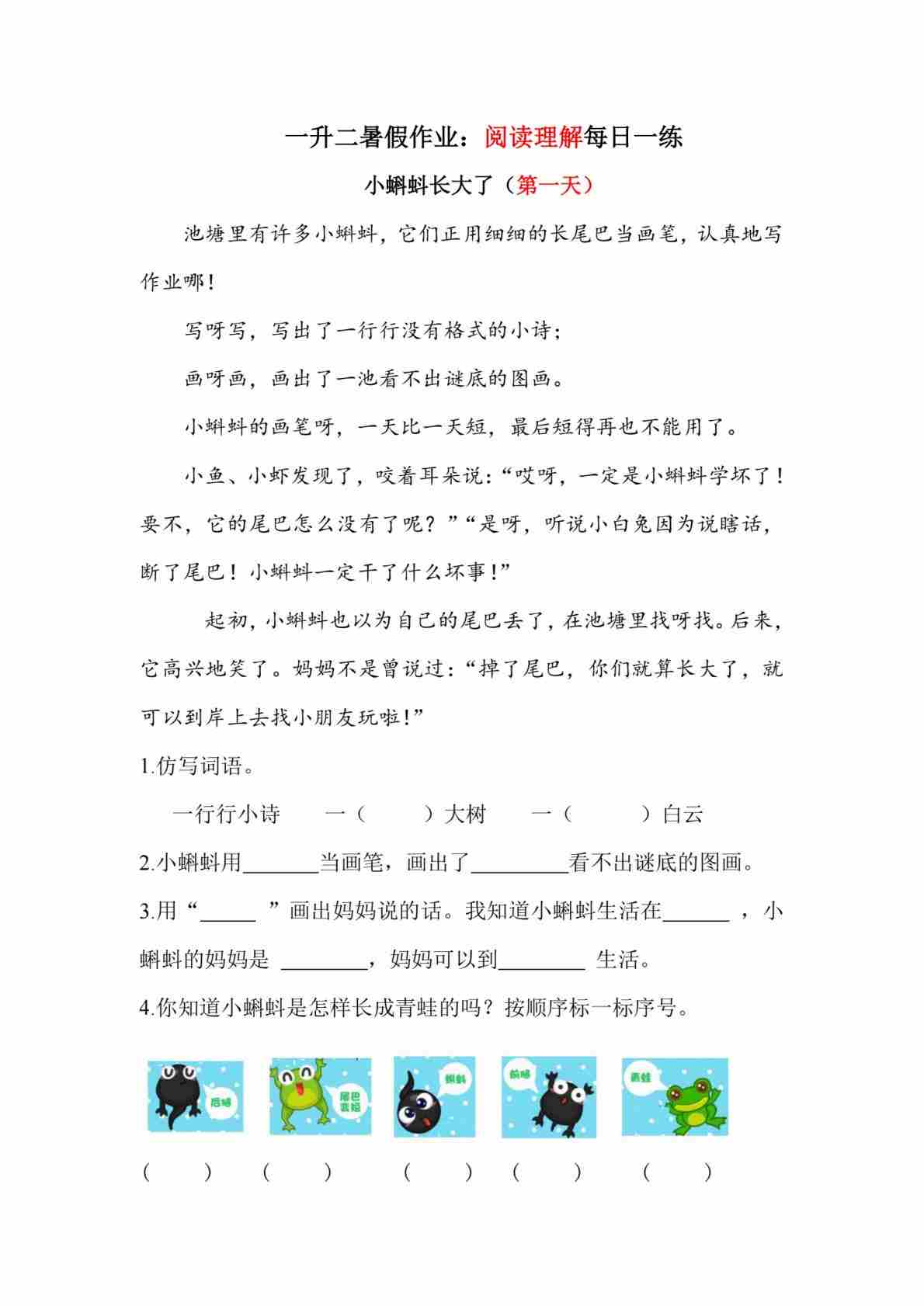 一升二年级语文25秋新版暑假衔接必背闯关表(13页)