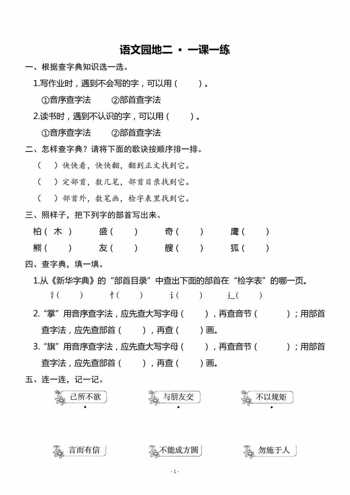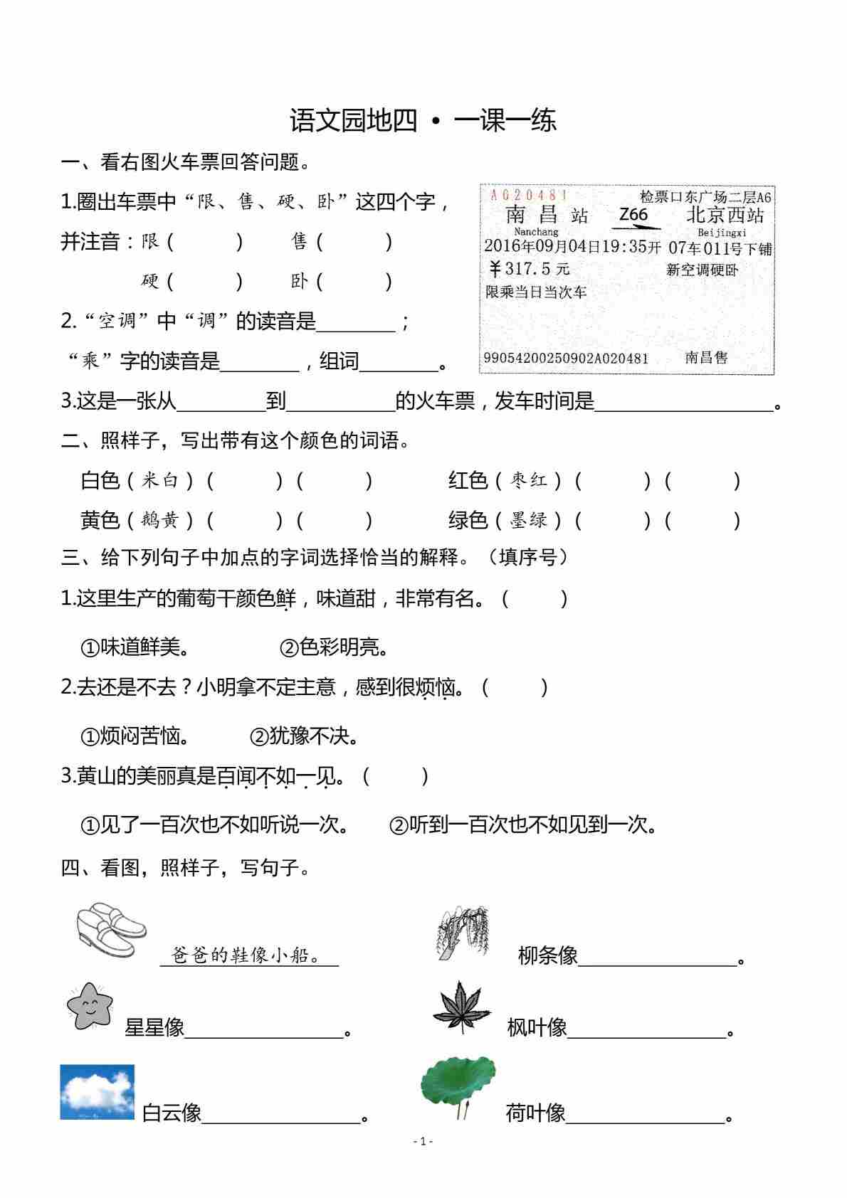 二(上)《语文园地四》一课一练