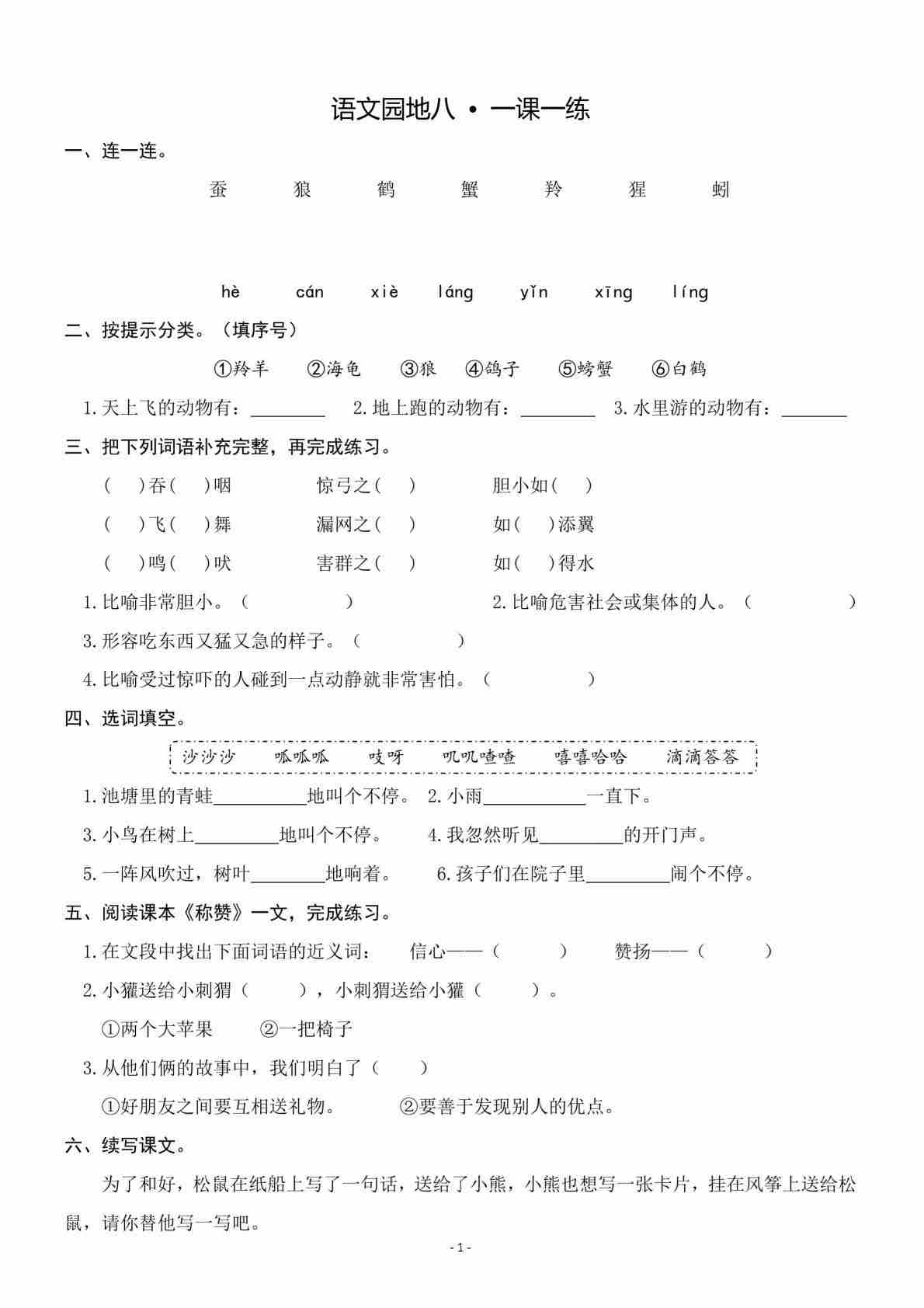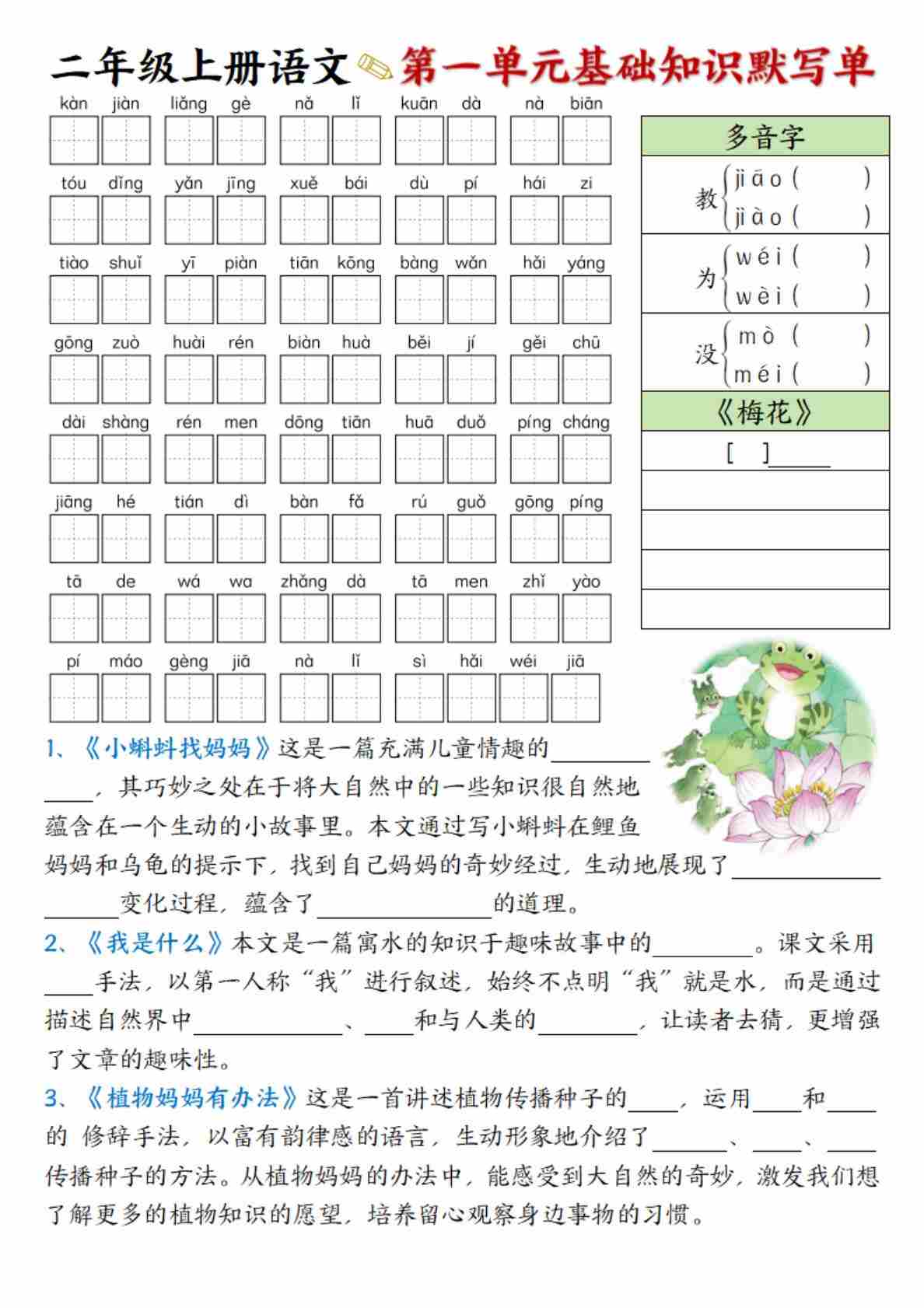 二(上)语文1-8单元基础知识默写单10页