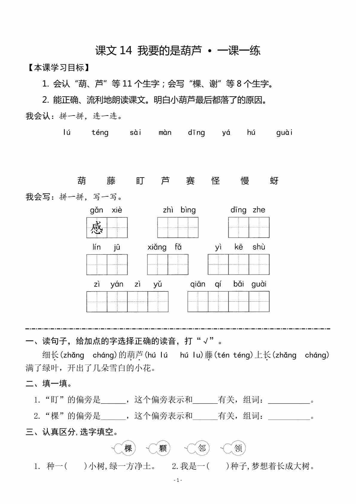 二(上)《课文14 我要的是葫芦》《语文园地 五》一课一练