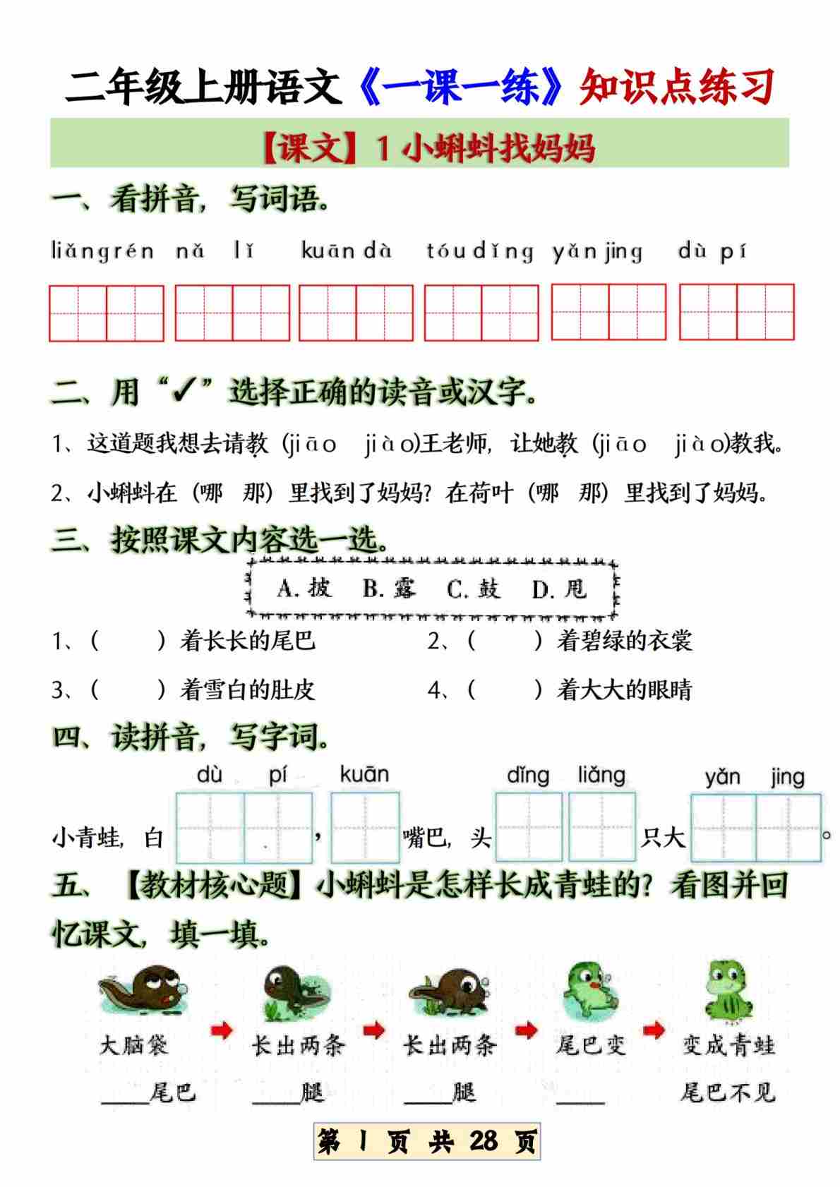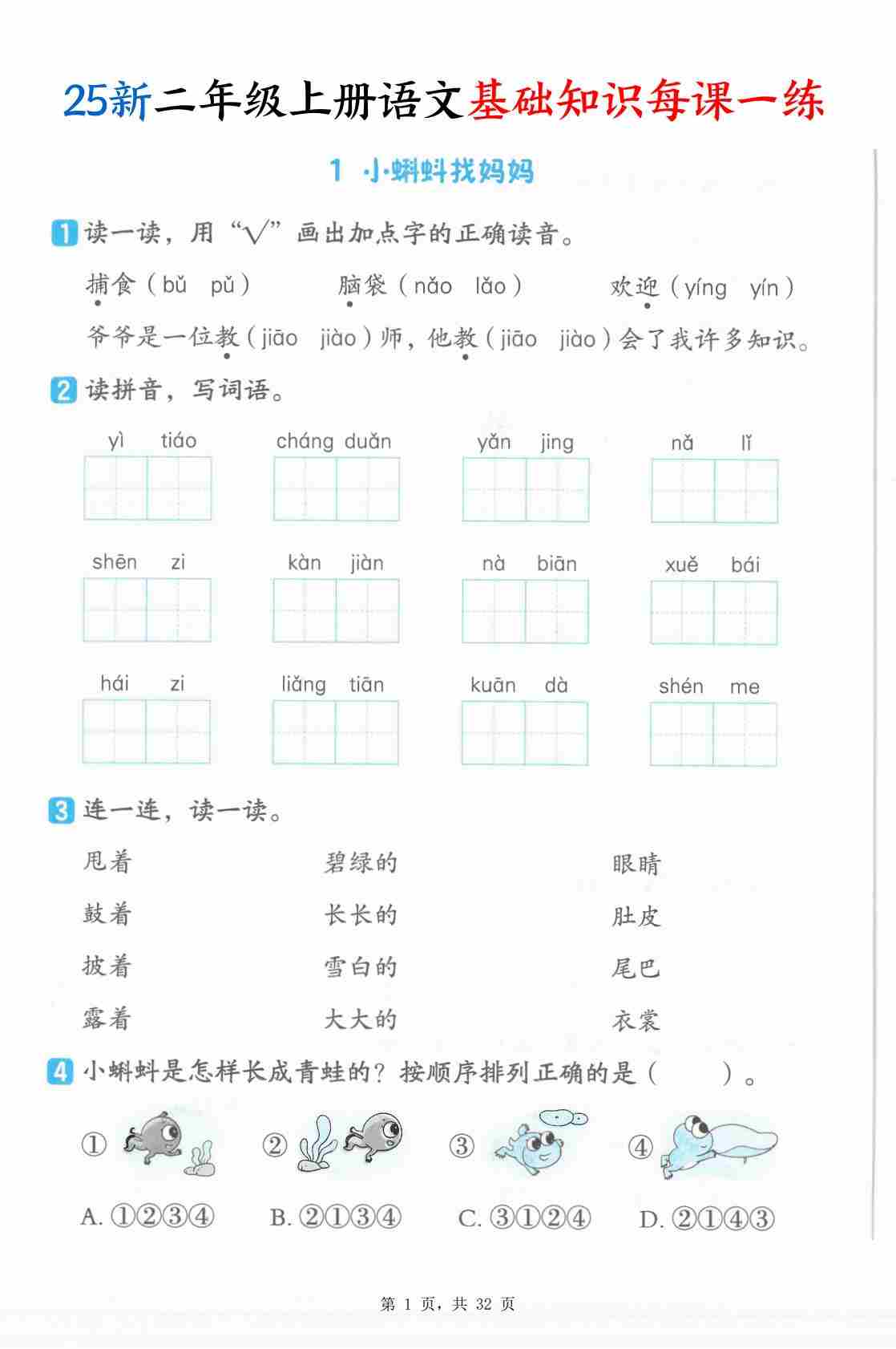 二(上)语文【25新基础知识每课一练(含答案32页)
