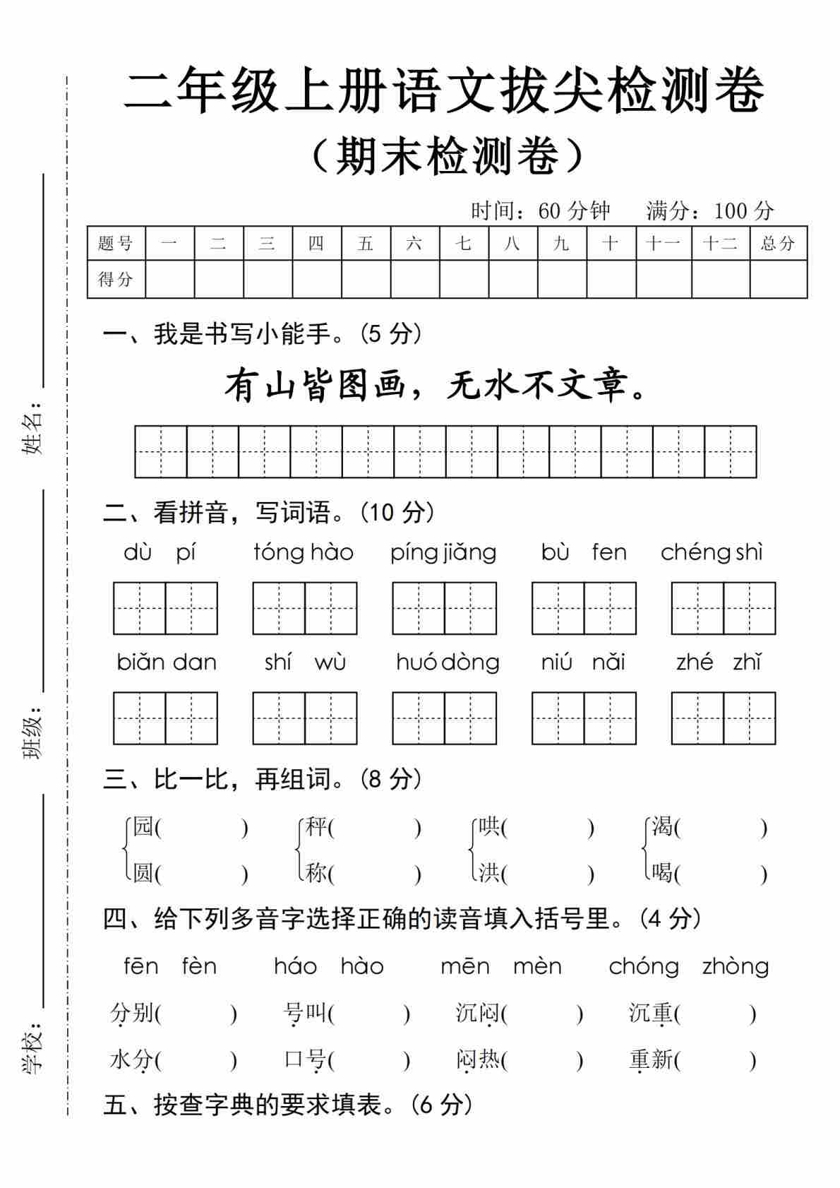 二(上)语文期末拔尖检测卷-有山皆图画(1)