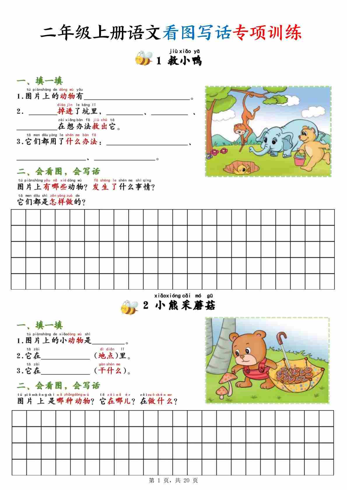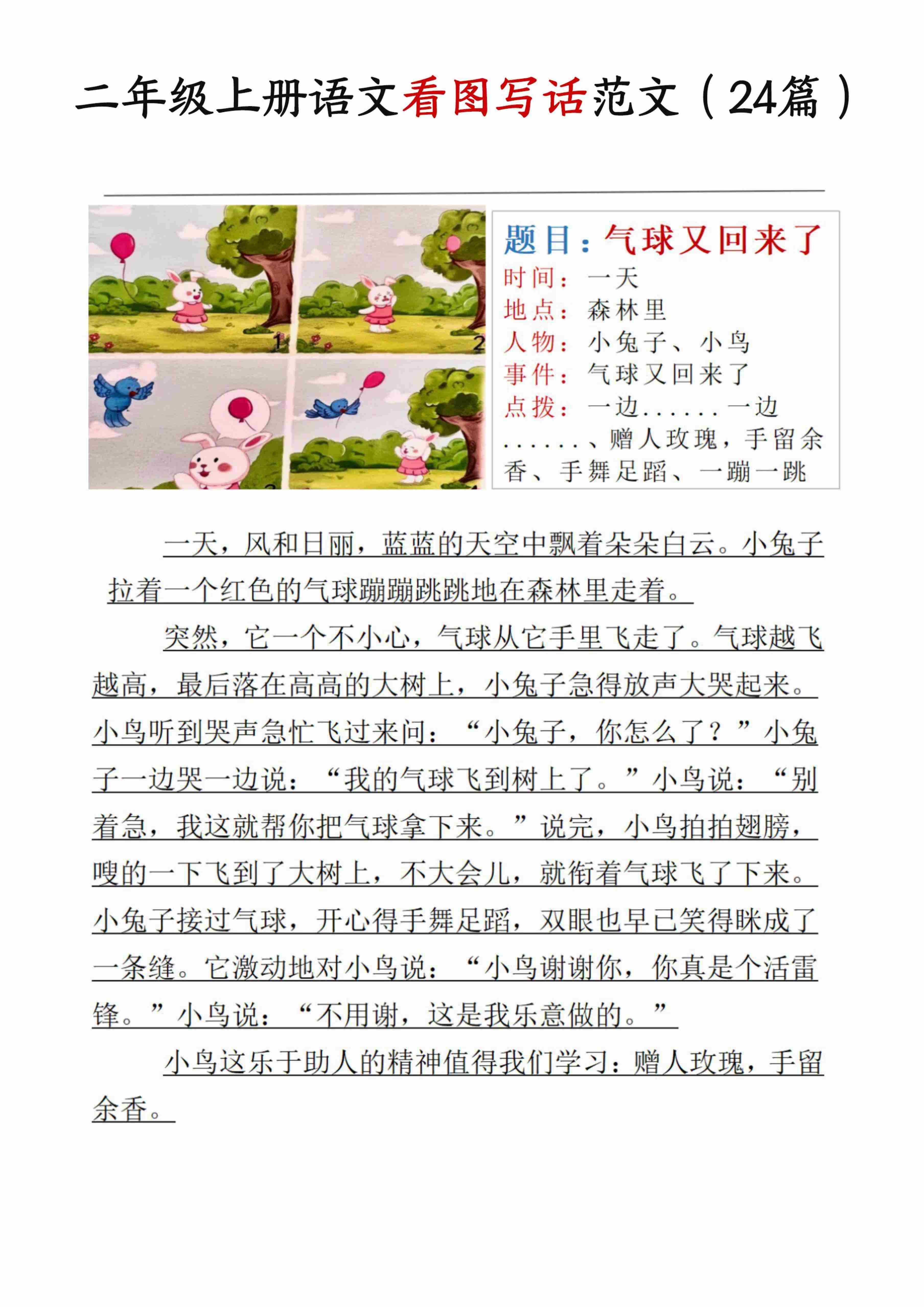二(上)语文看图写话专项训练20篇(含范文20页)