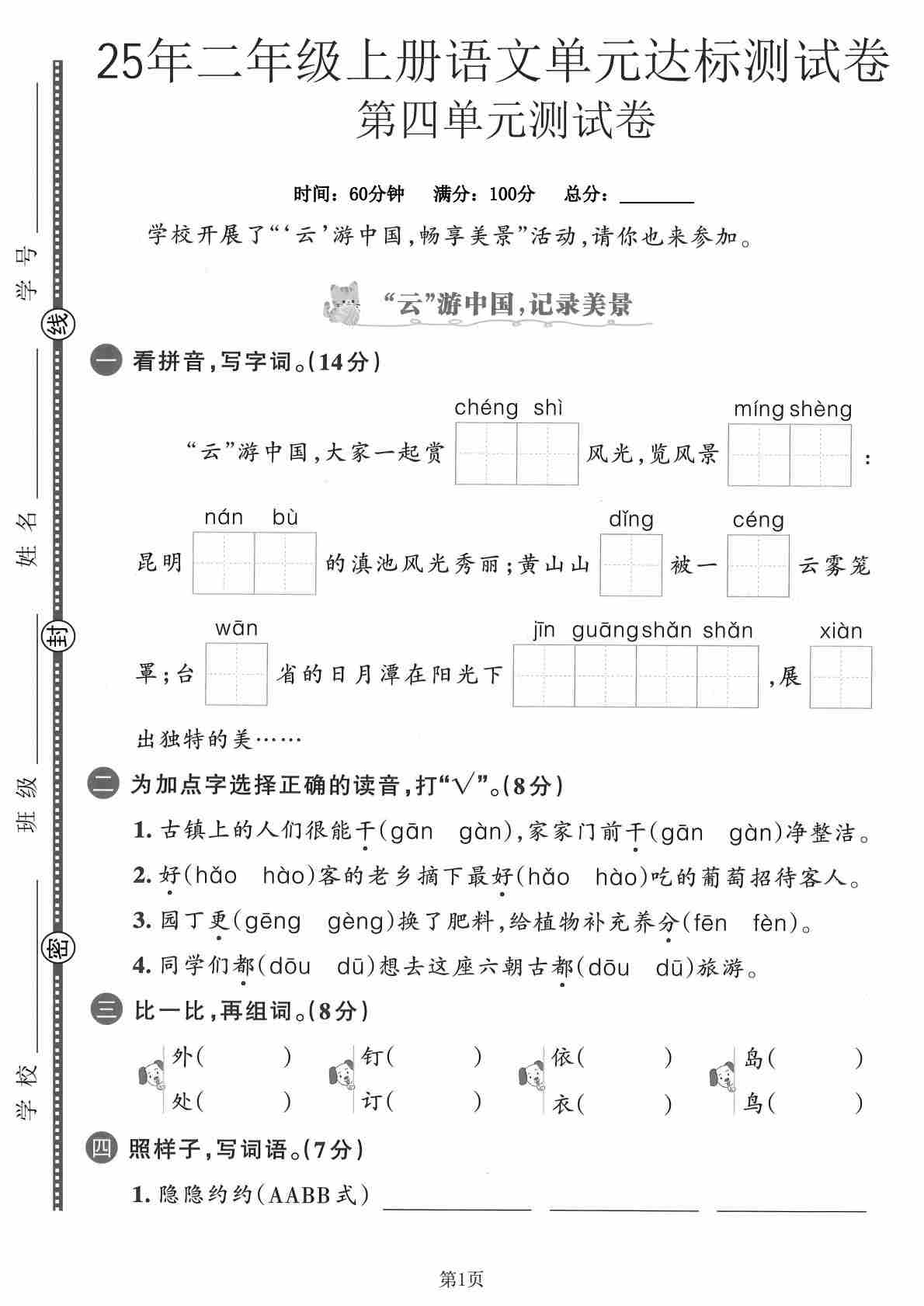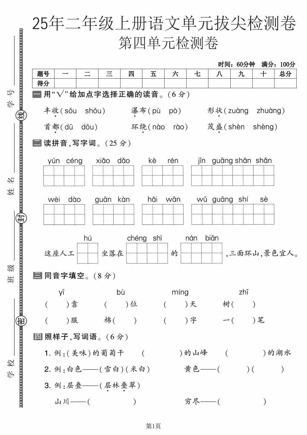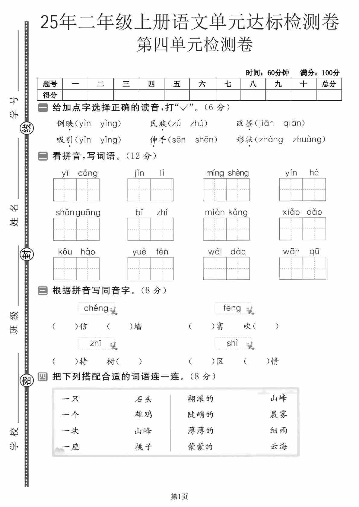 二(上)语文【2025年-第四单元测试卷1】