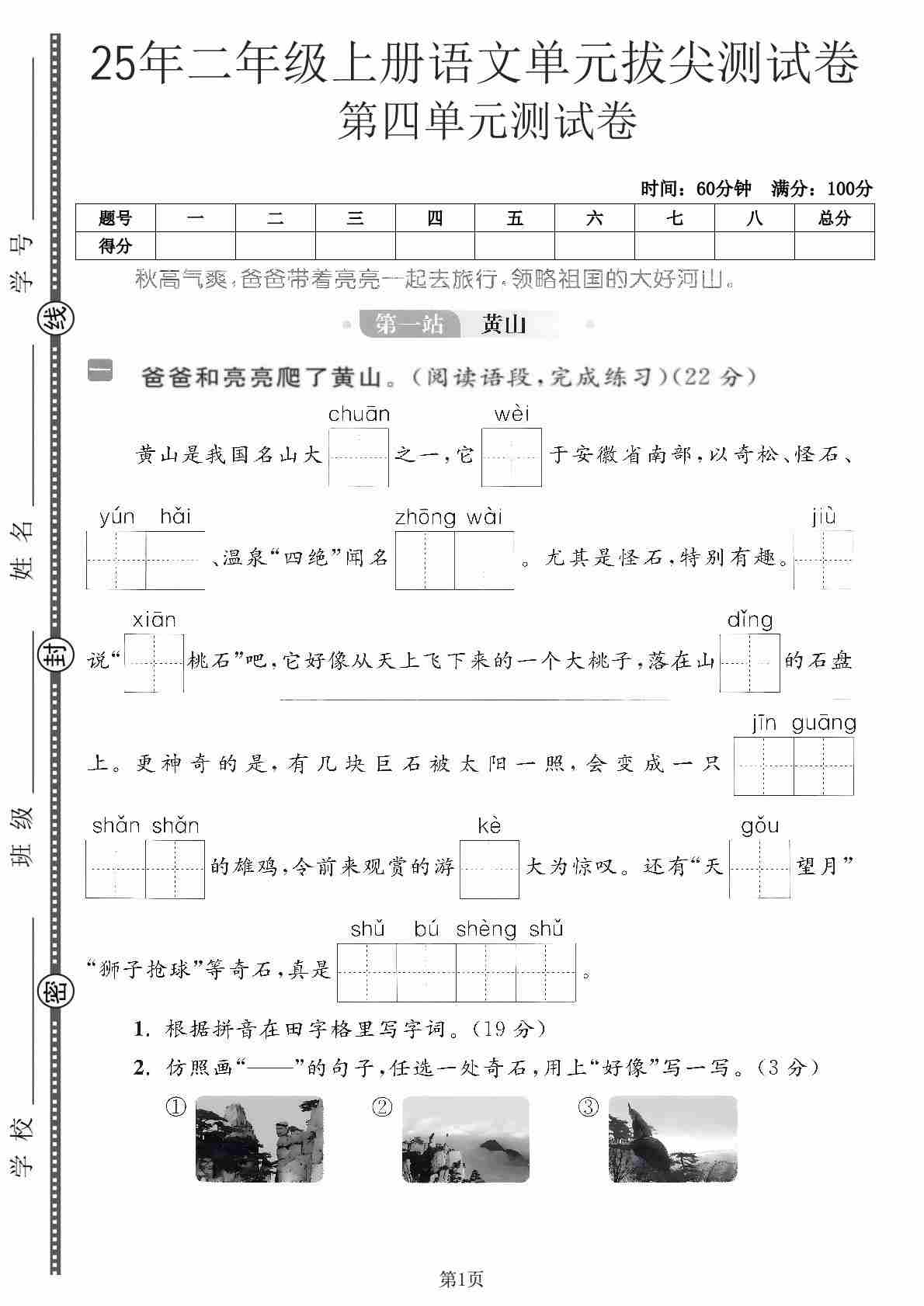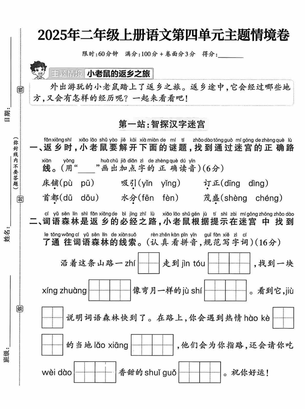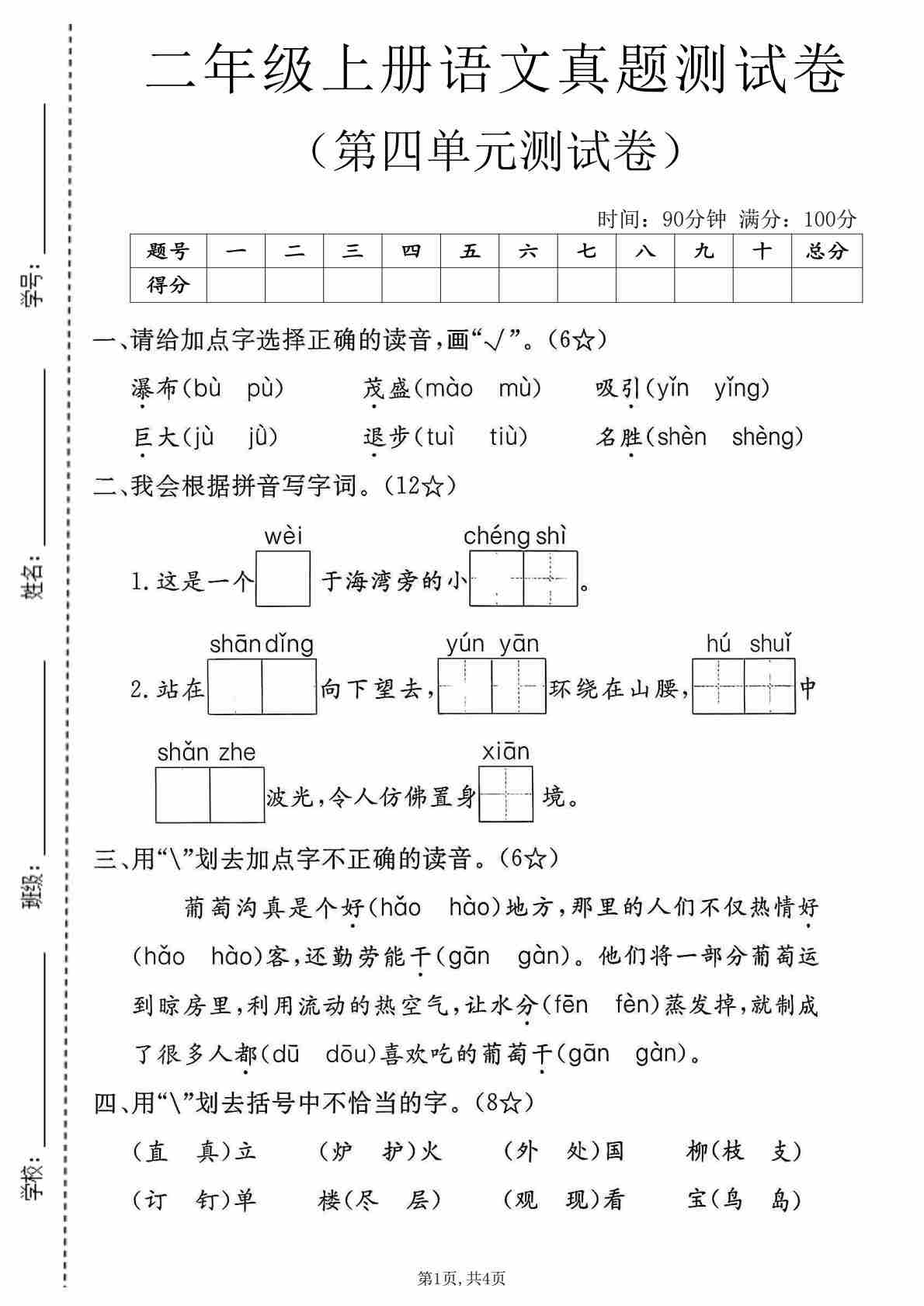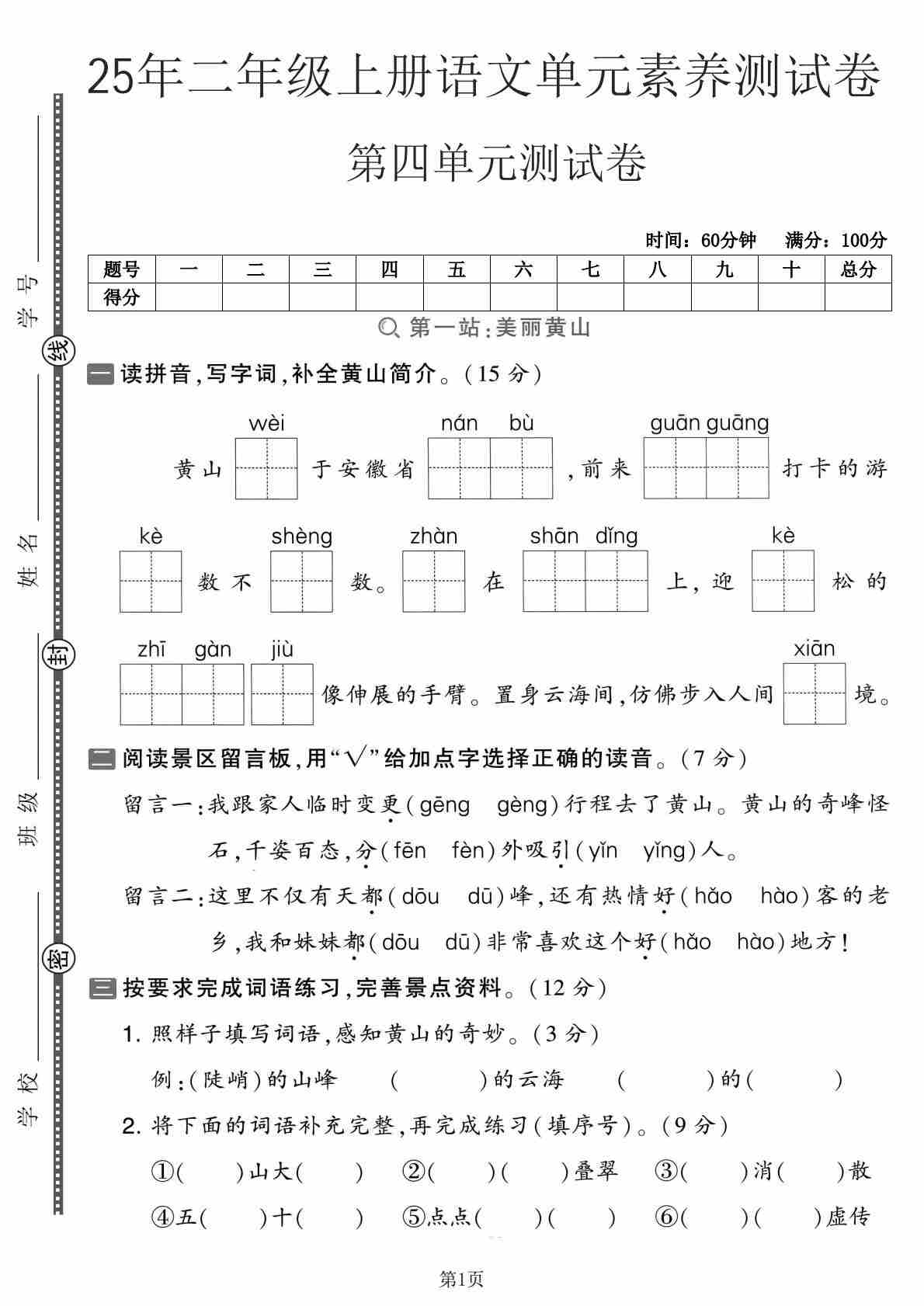 二(上)语文【2025年-第四单元测试卷1】
