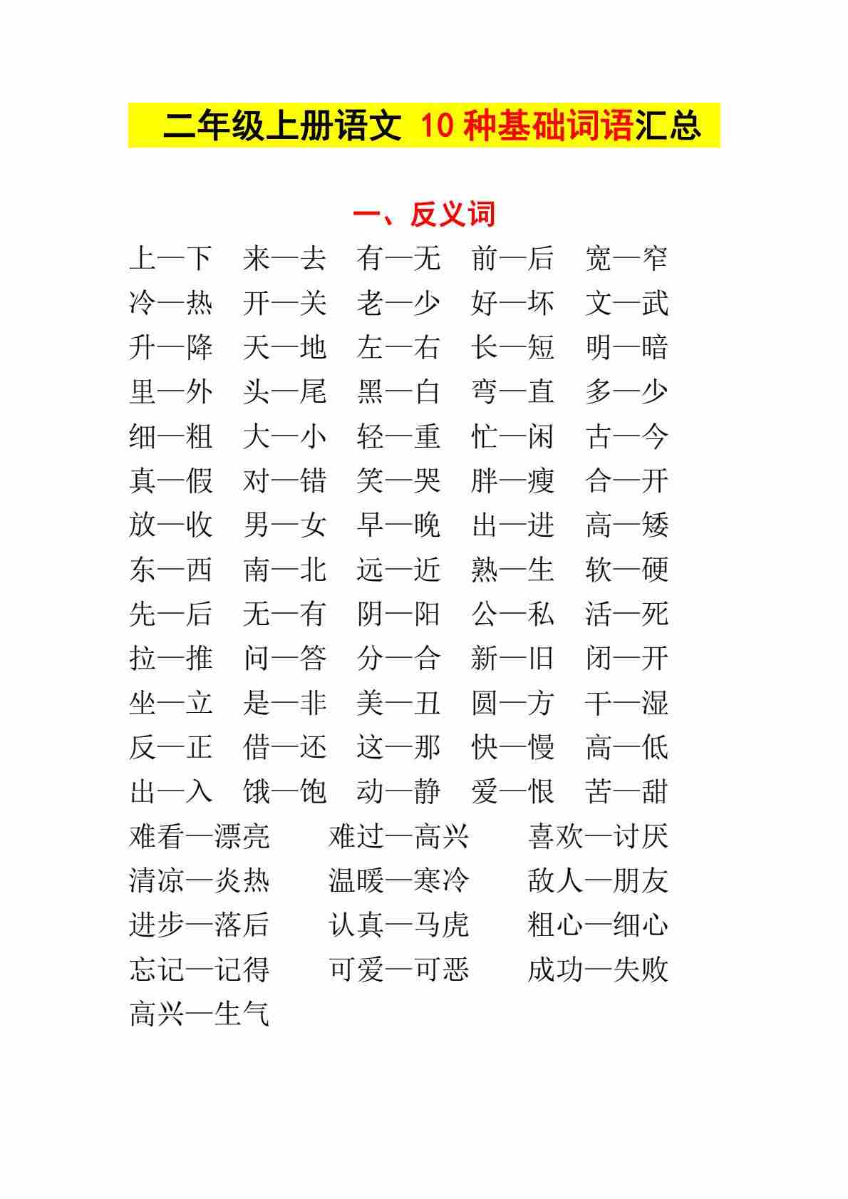二(上)语文 10种基础词汇汇总