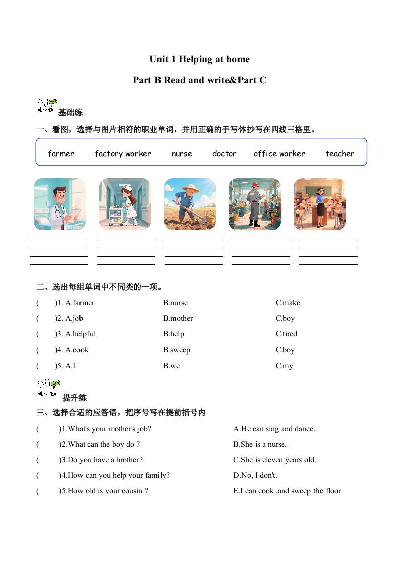 Unit 1 第6课时 Part B Read and write&Part C(分层作业)英语人教PEP版四年级上册(新教材)