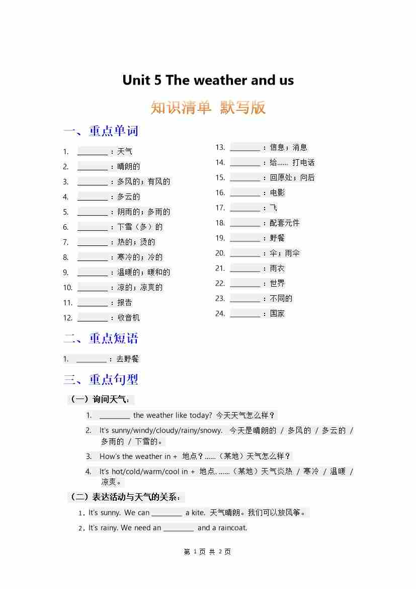 知识清单 Unit 5 默写版