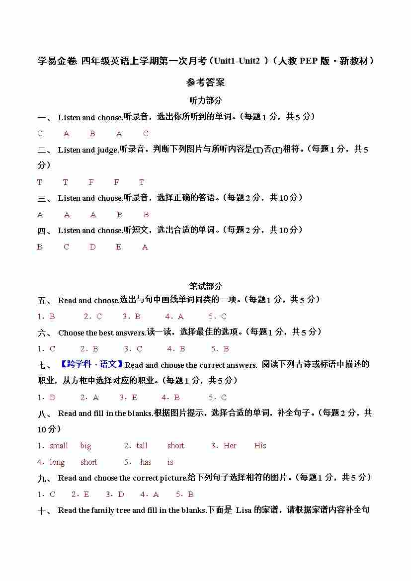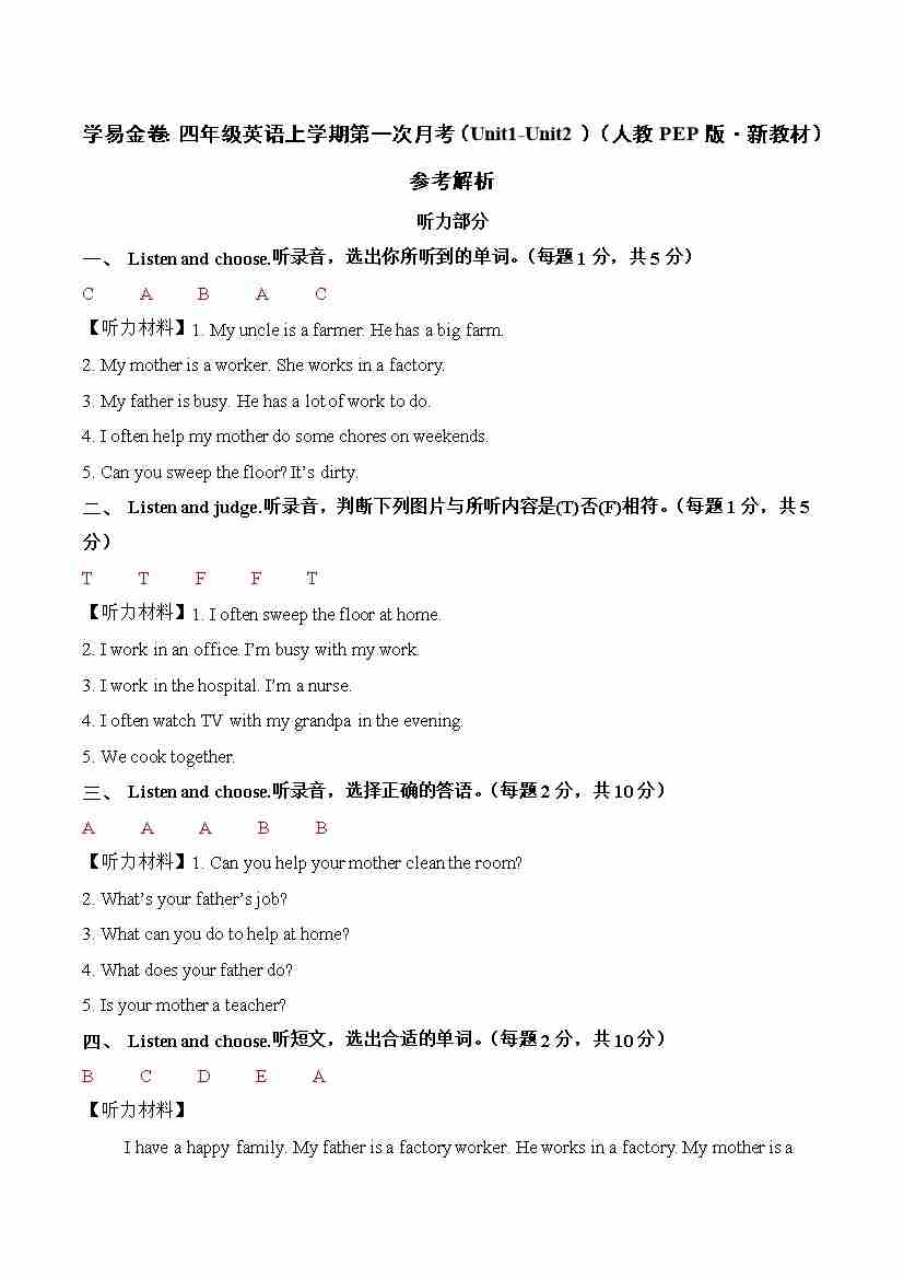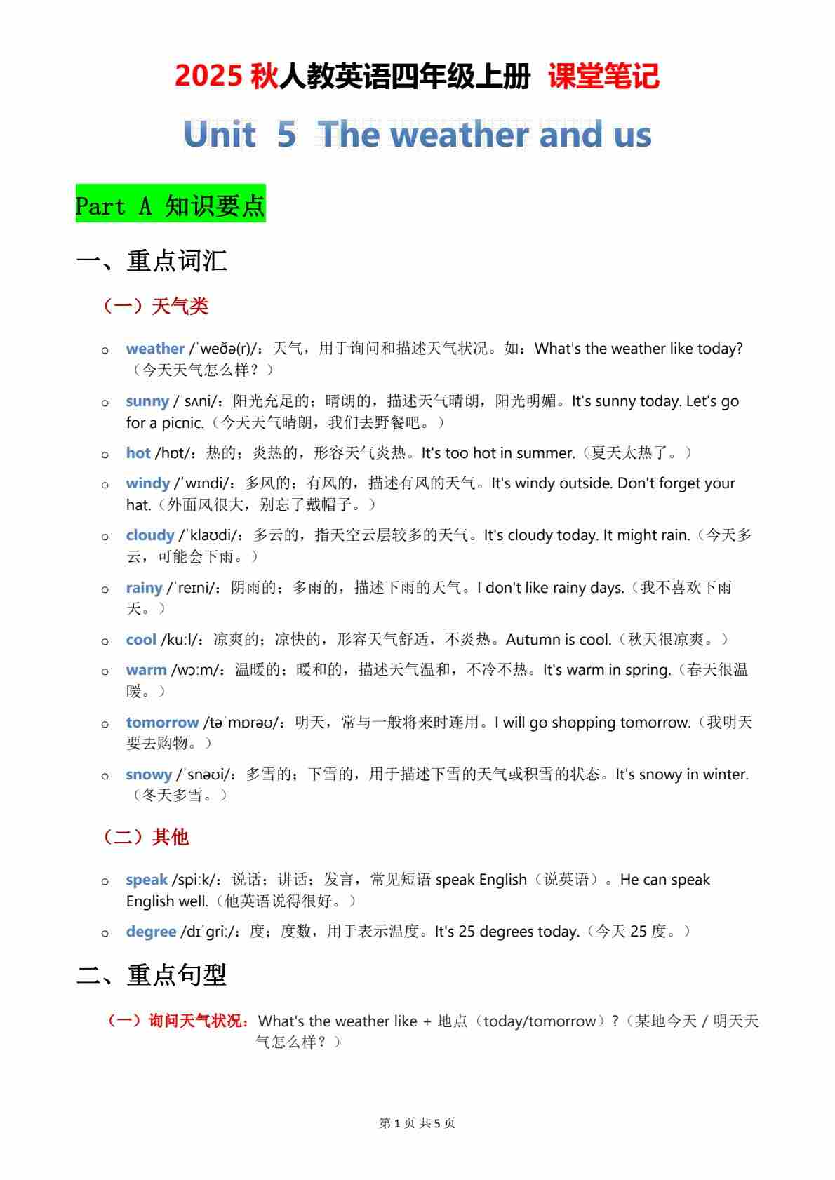 2025秋人教版四年级上册英语课堂笔记Unit 5