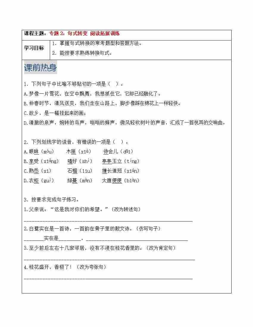 专题1:修辞手法的运用 阅读拓展练习(学生版)