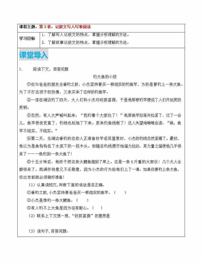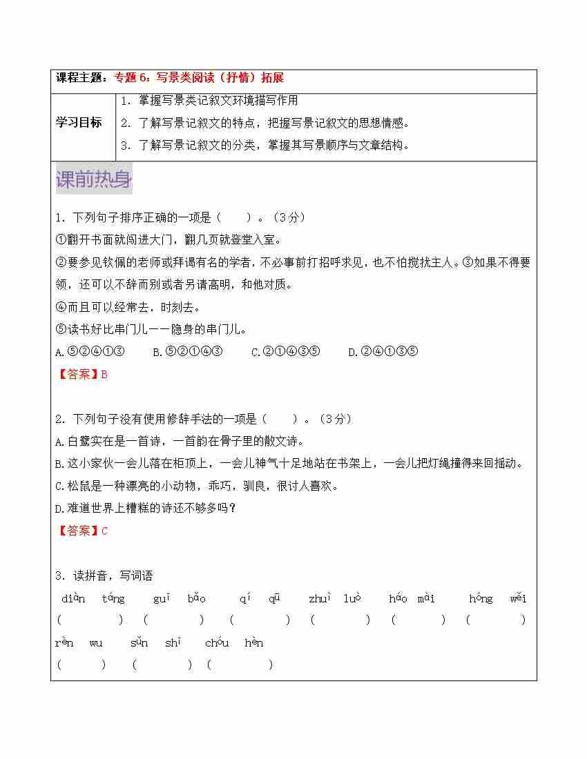 专题5:写作之人物描写+写人类阅读拓展(教师版)