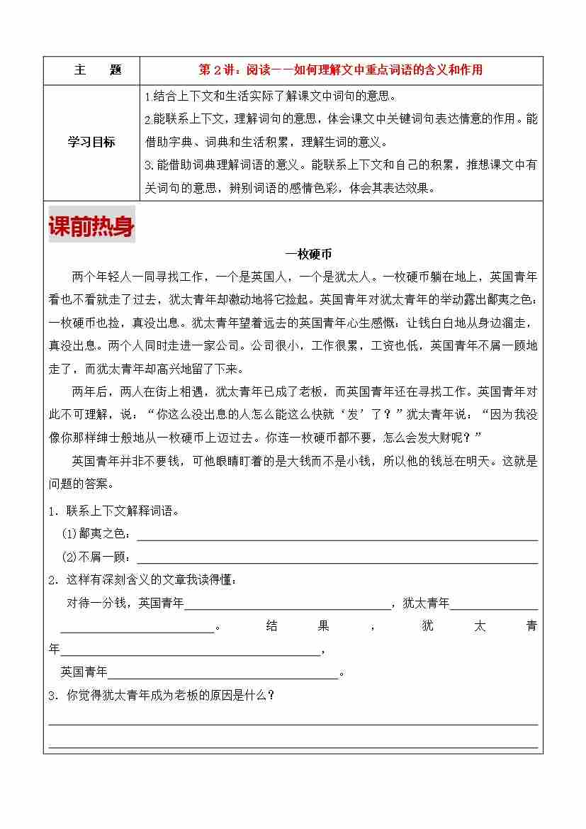 第2讲-理解文中重点词语的含义和作用(教师版)
