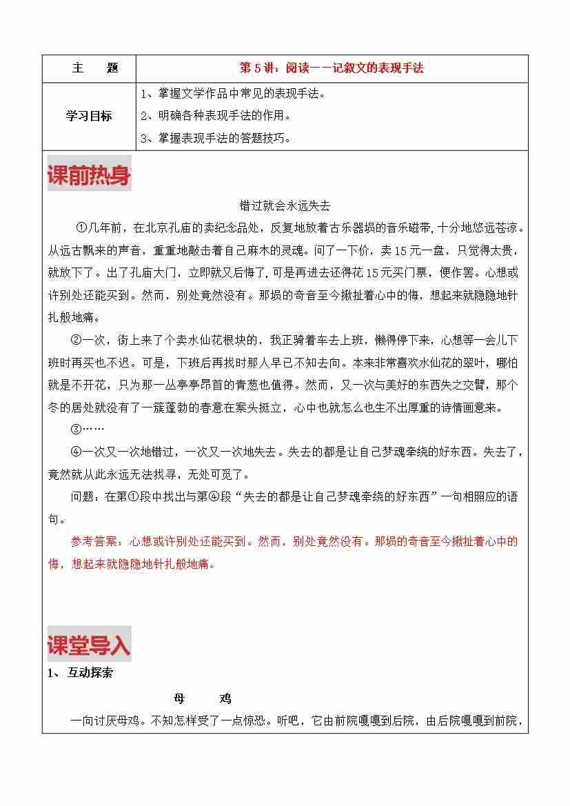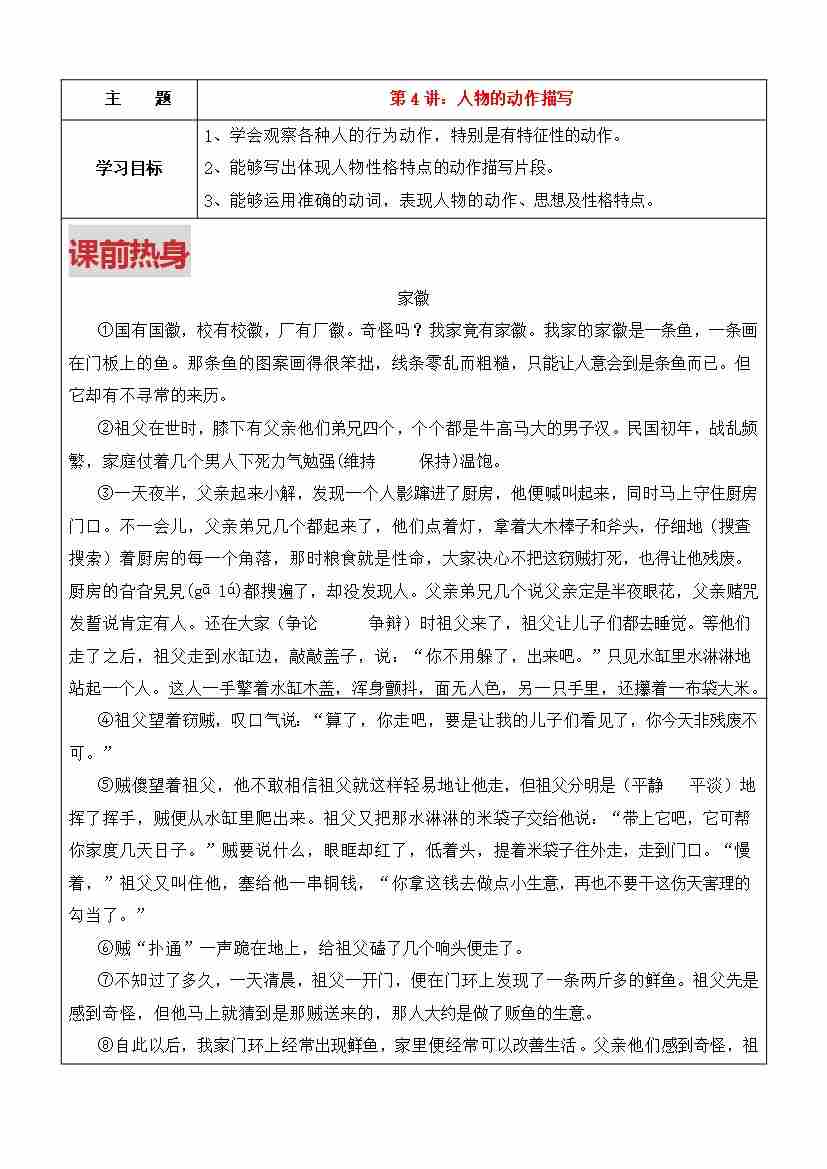 专题5:写作之人物描写+写人类阅读拓展(学生版)