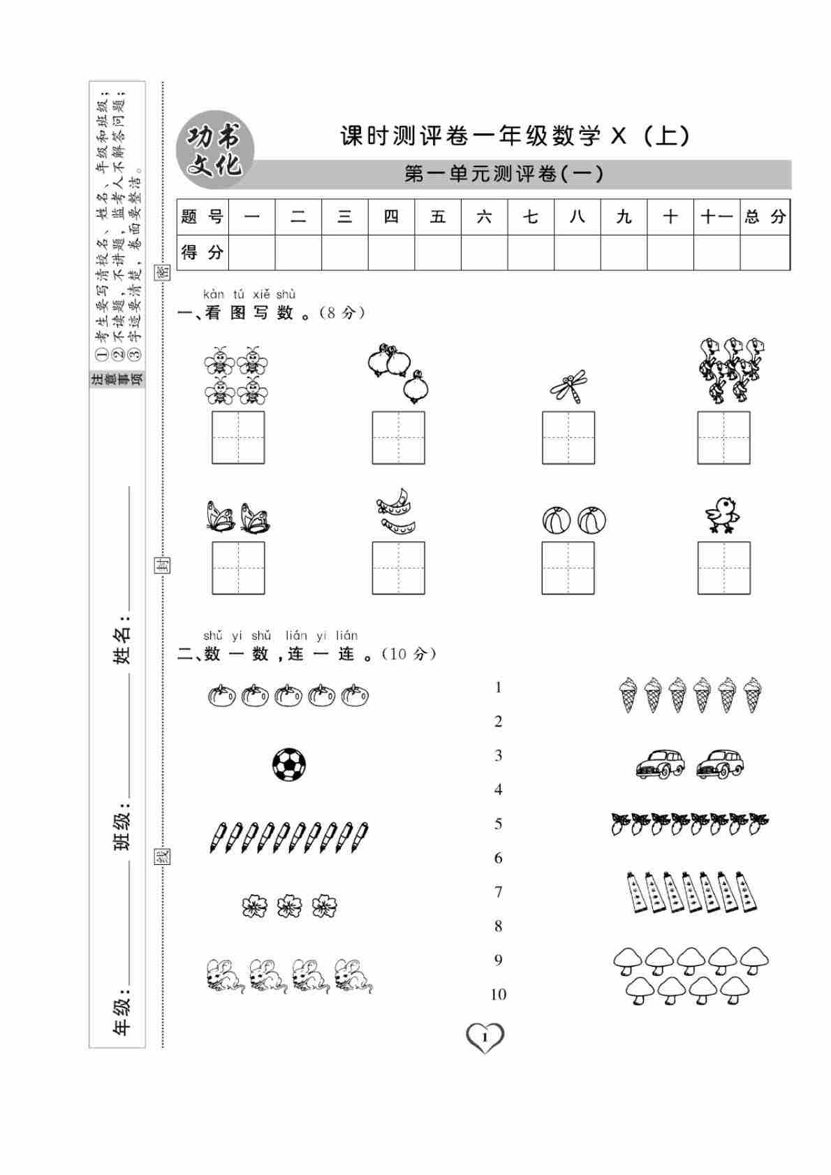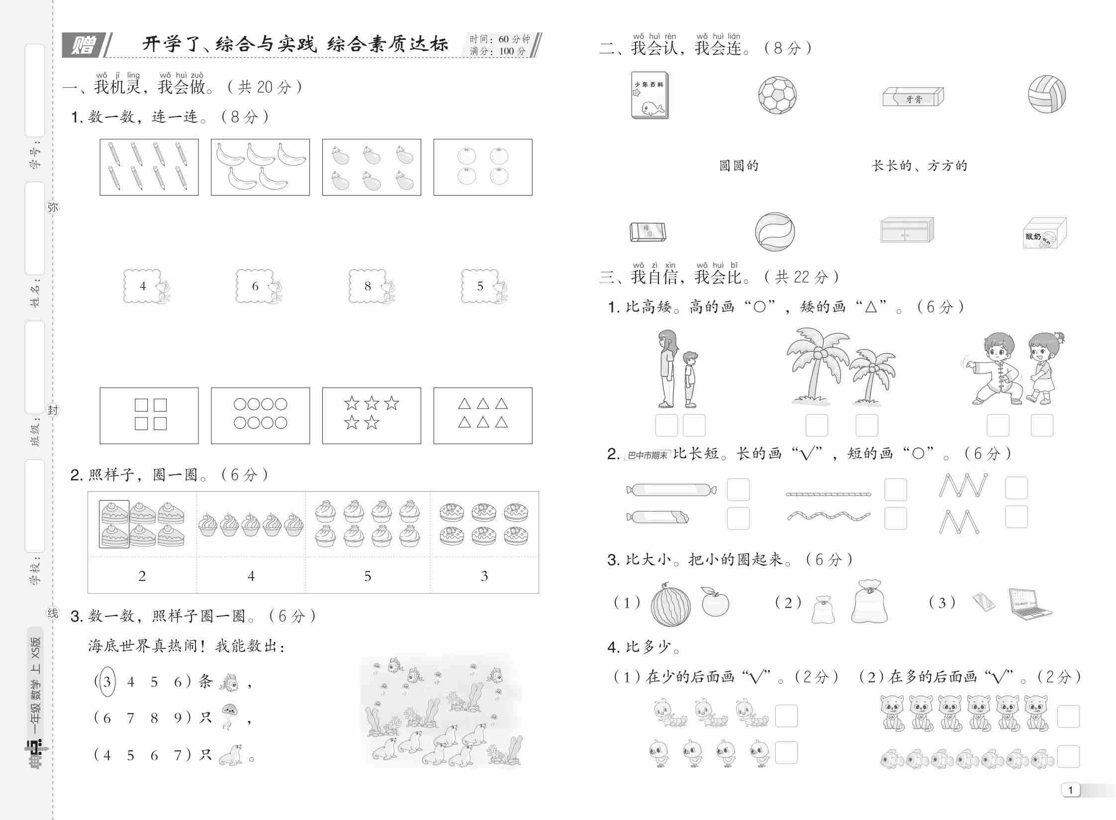 一上西师版数学【试卷《课堂练习》卷+答案】