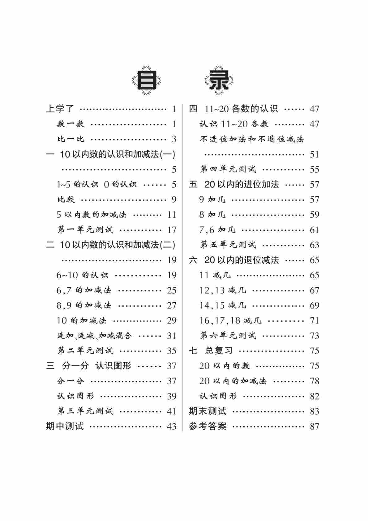 一上西师版数学【课时训练《课堂练习》】