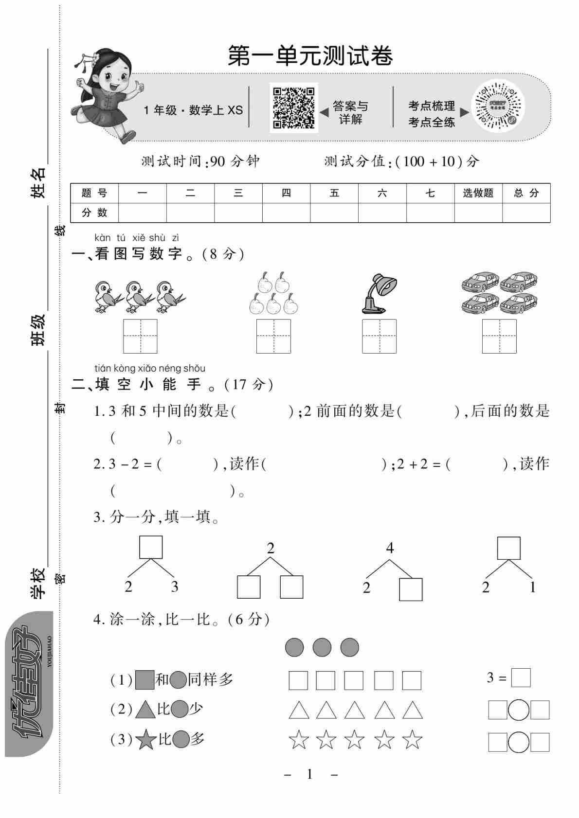 一上西师版数学【试卷《优佳好卷》】