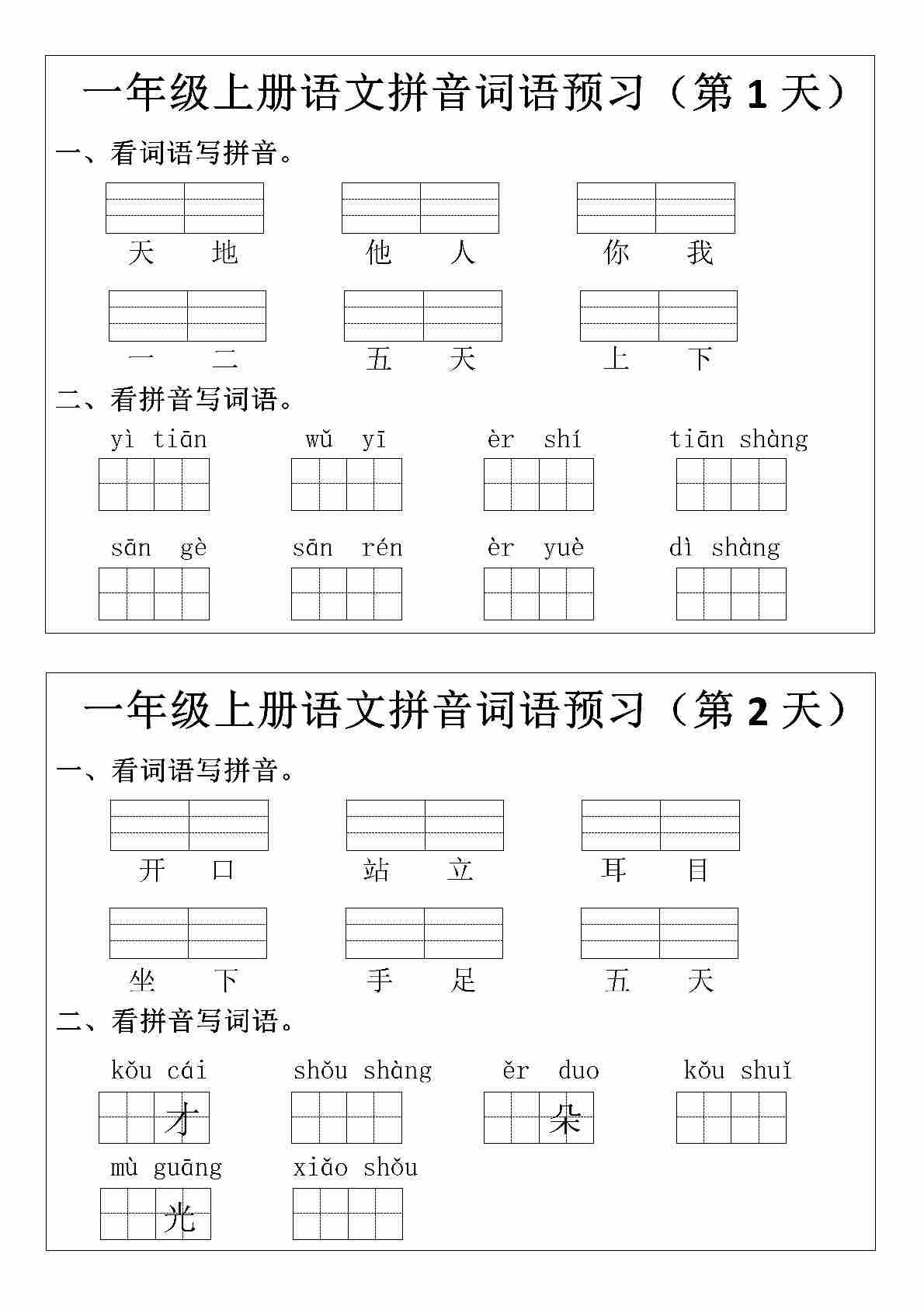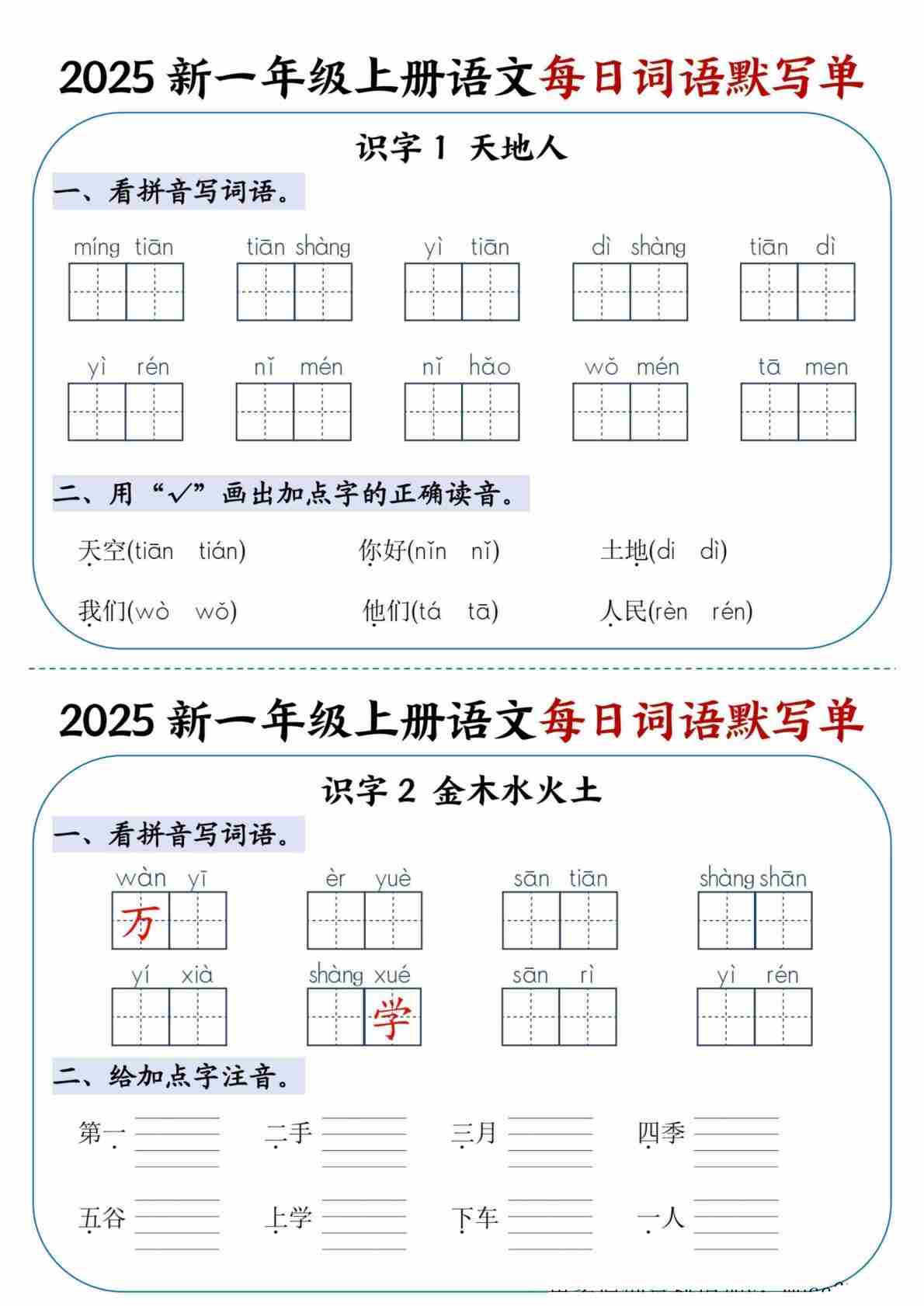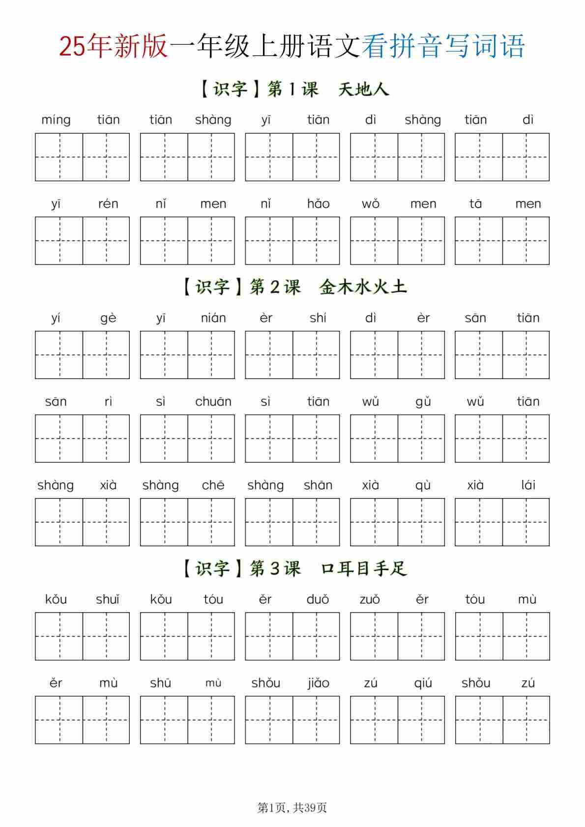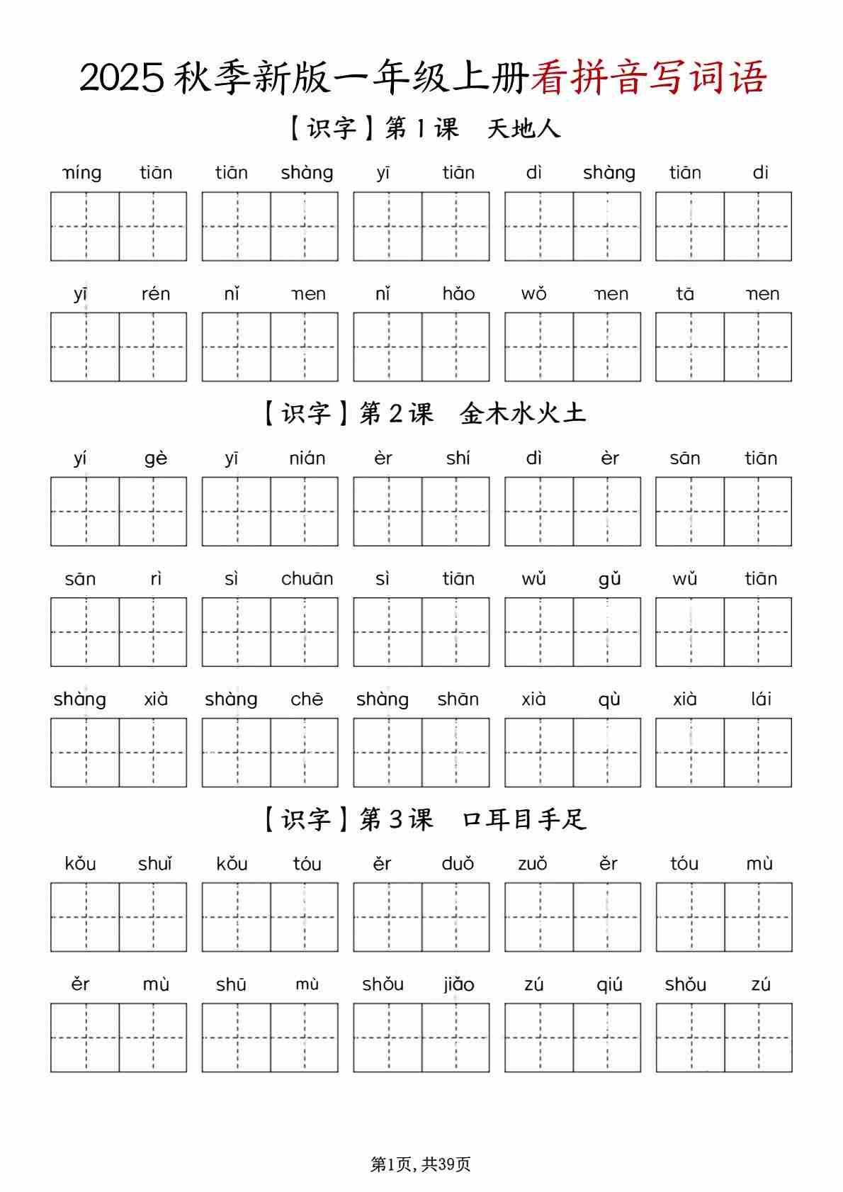 【25秋一上语文全册看拼音写词语(含答案39页)