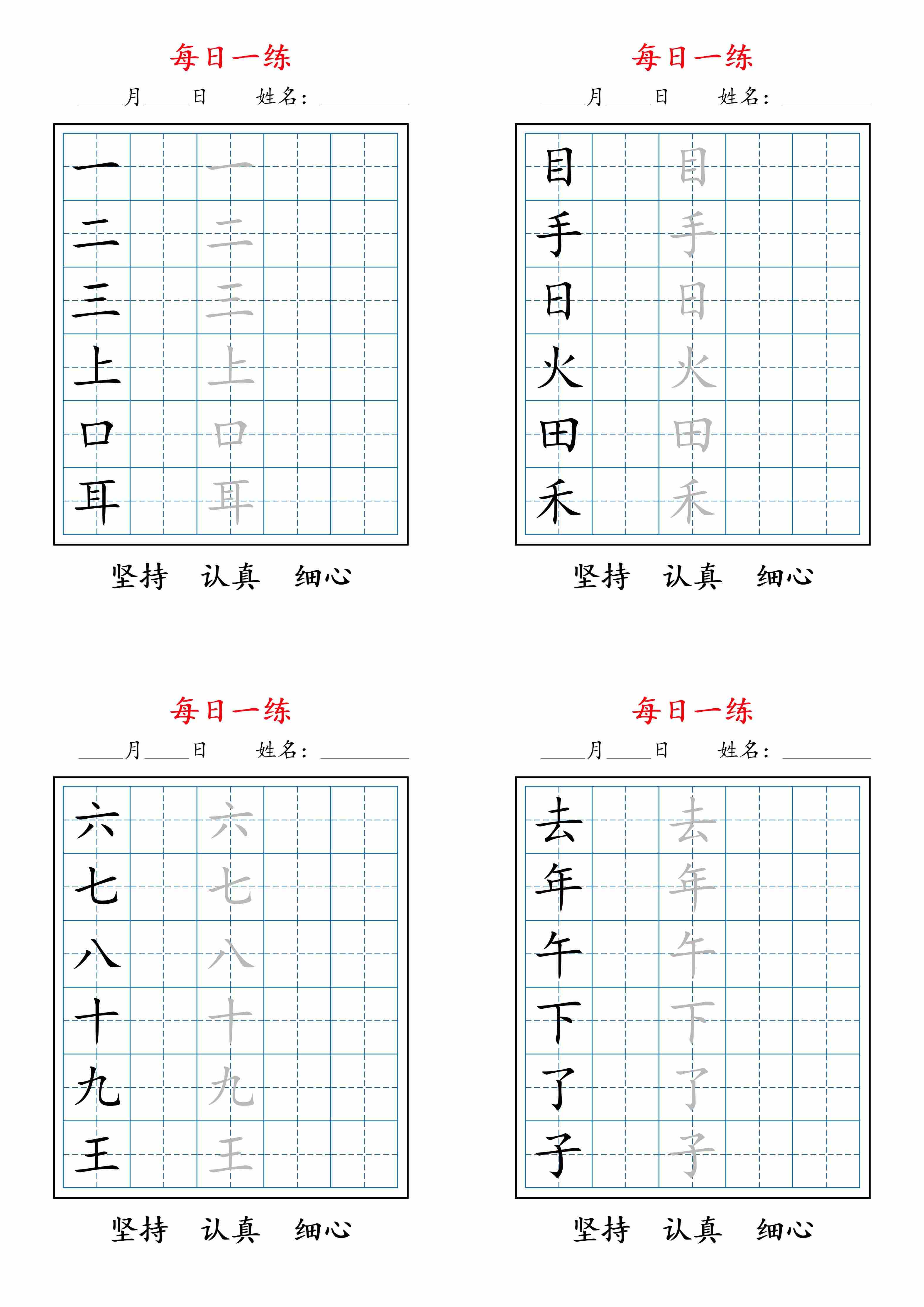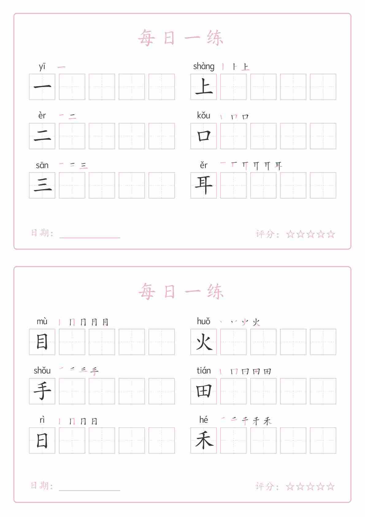 一上语文25秋写字表每日一练字帖(5字版)9页