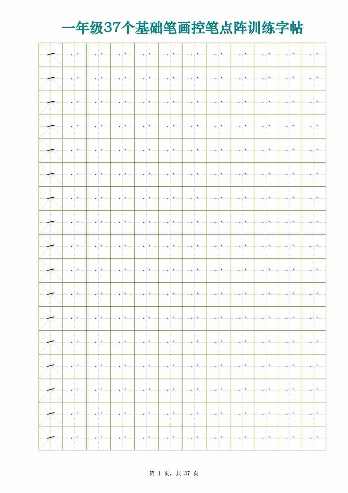 一上语文【37个基础笔画控笔点阵训练字帖37页】