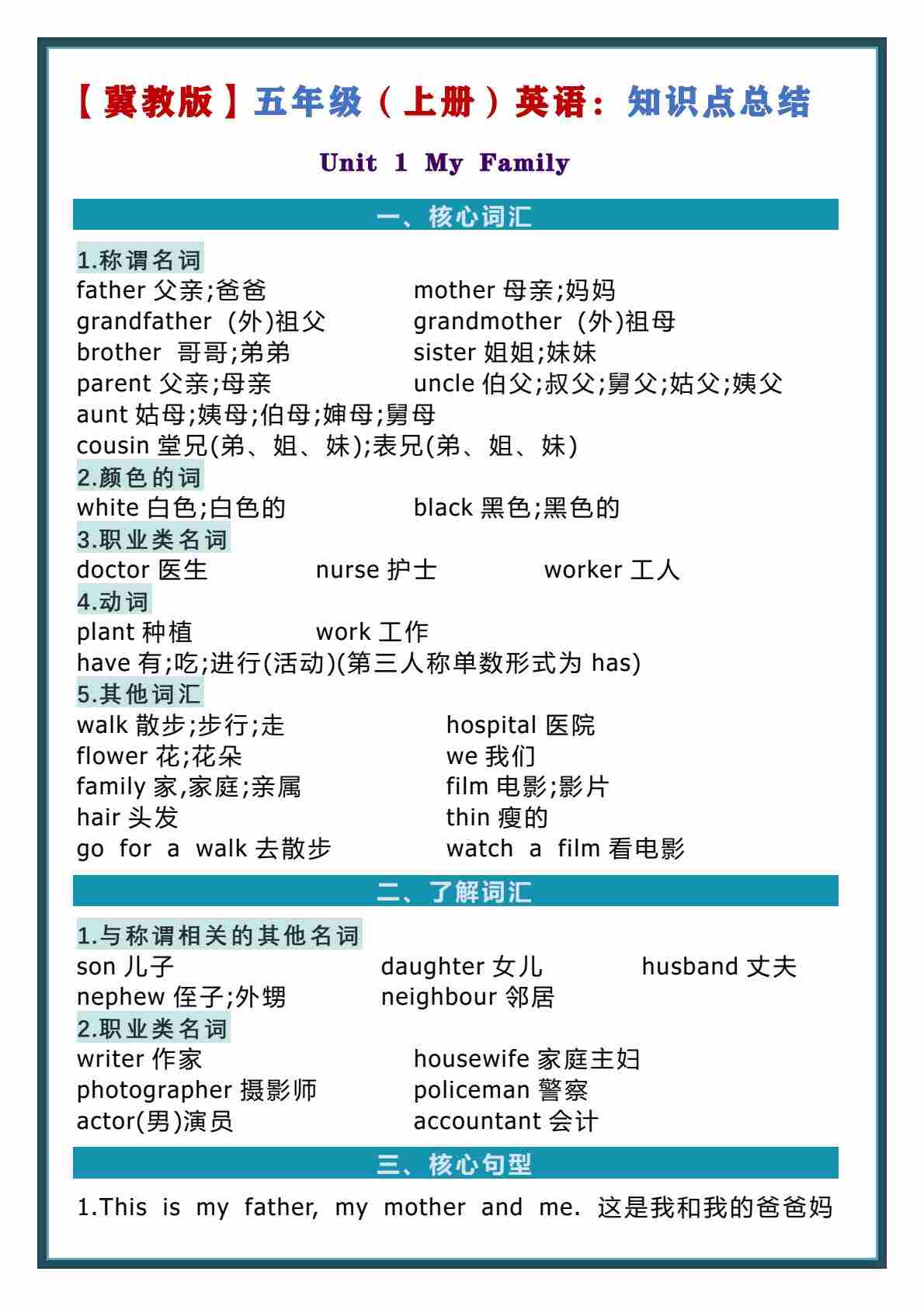 五上冀教版英语【知识点总结】