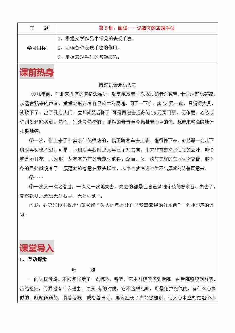 第5讲-记叙文的表现手法(学生版)