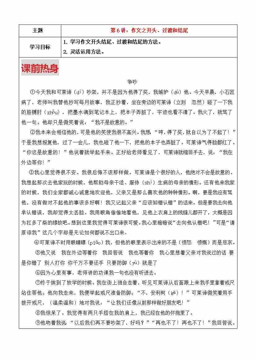 第6讲-作文之开头、过渡、结尾(学生版)