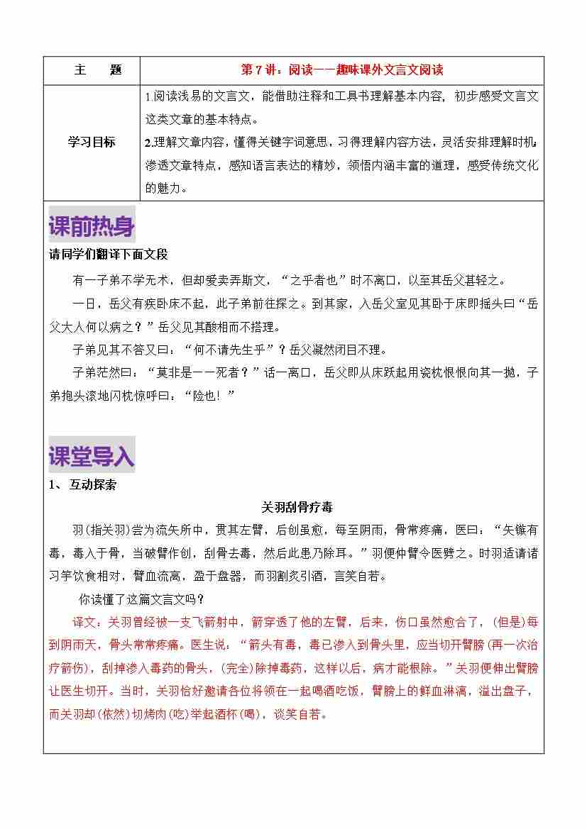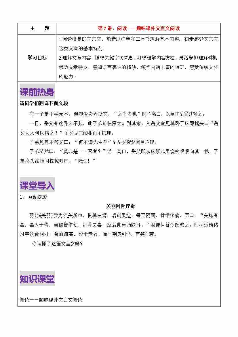 第7讲-趣味文言文阅读 (学生版)