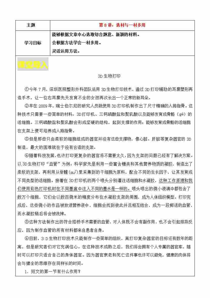 第8讲-选材与一材多用(学生版)