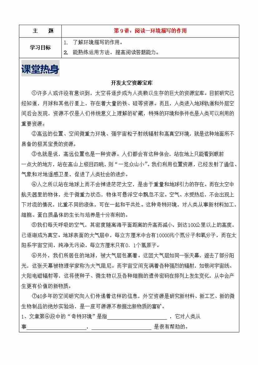第9讲-阅读-环境描写(学生版)