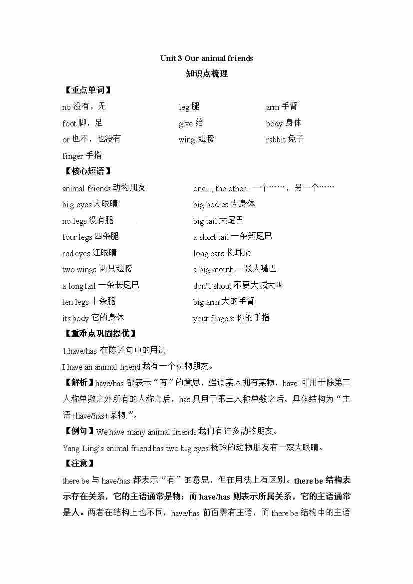 五年级上册英语讲义(梳理 讲解 典例 习题)-Unit 3 Our animal friends 译林三起