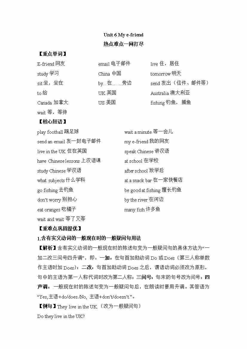 五年级上册英语讲义(梳理 讲解 典例 习题)-Unit 6 My e-friend 译林三起
