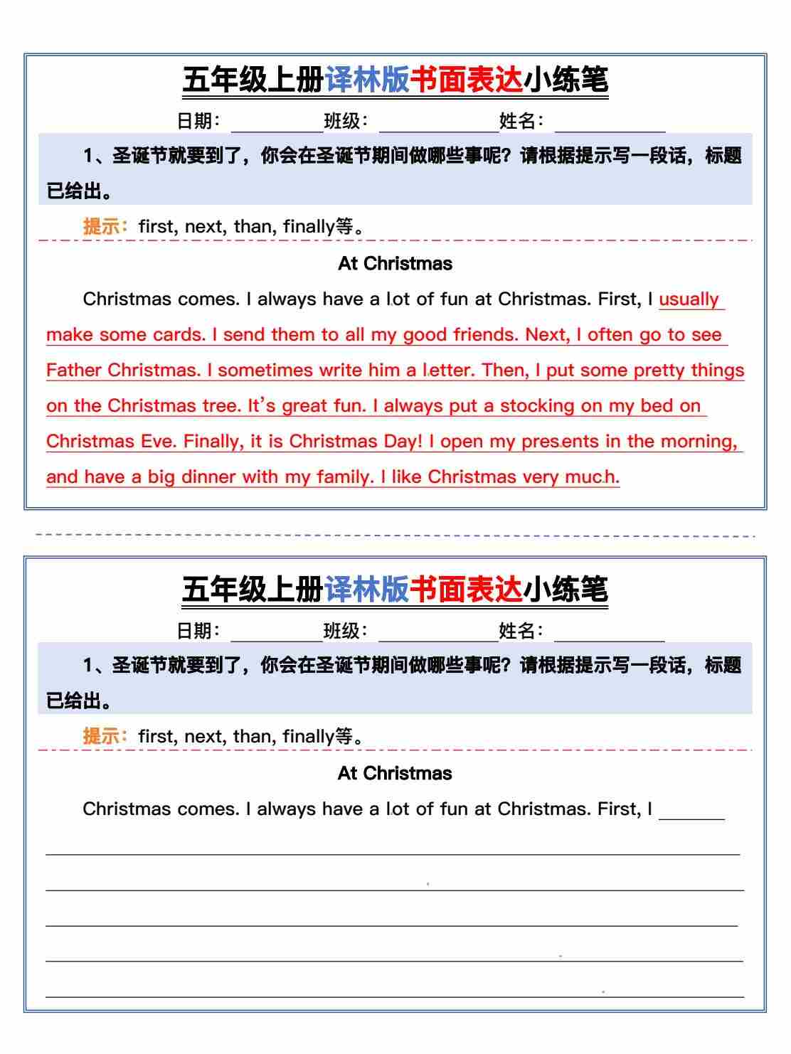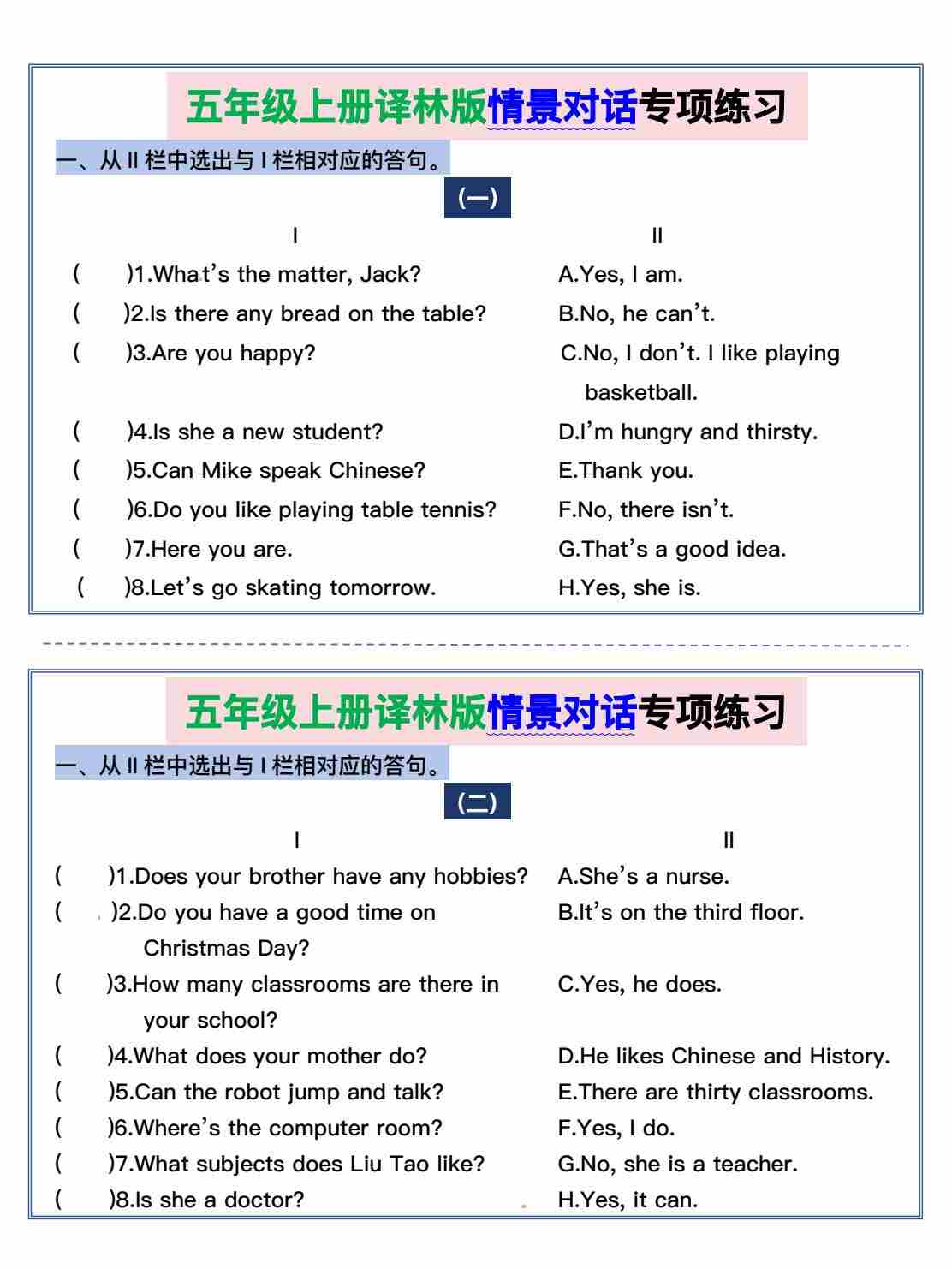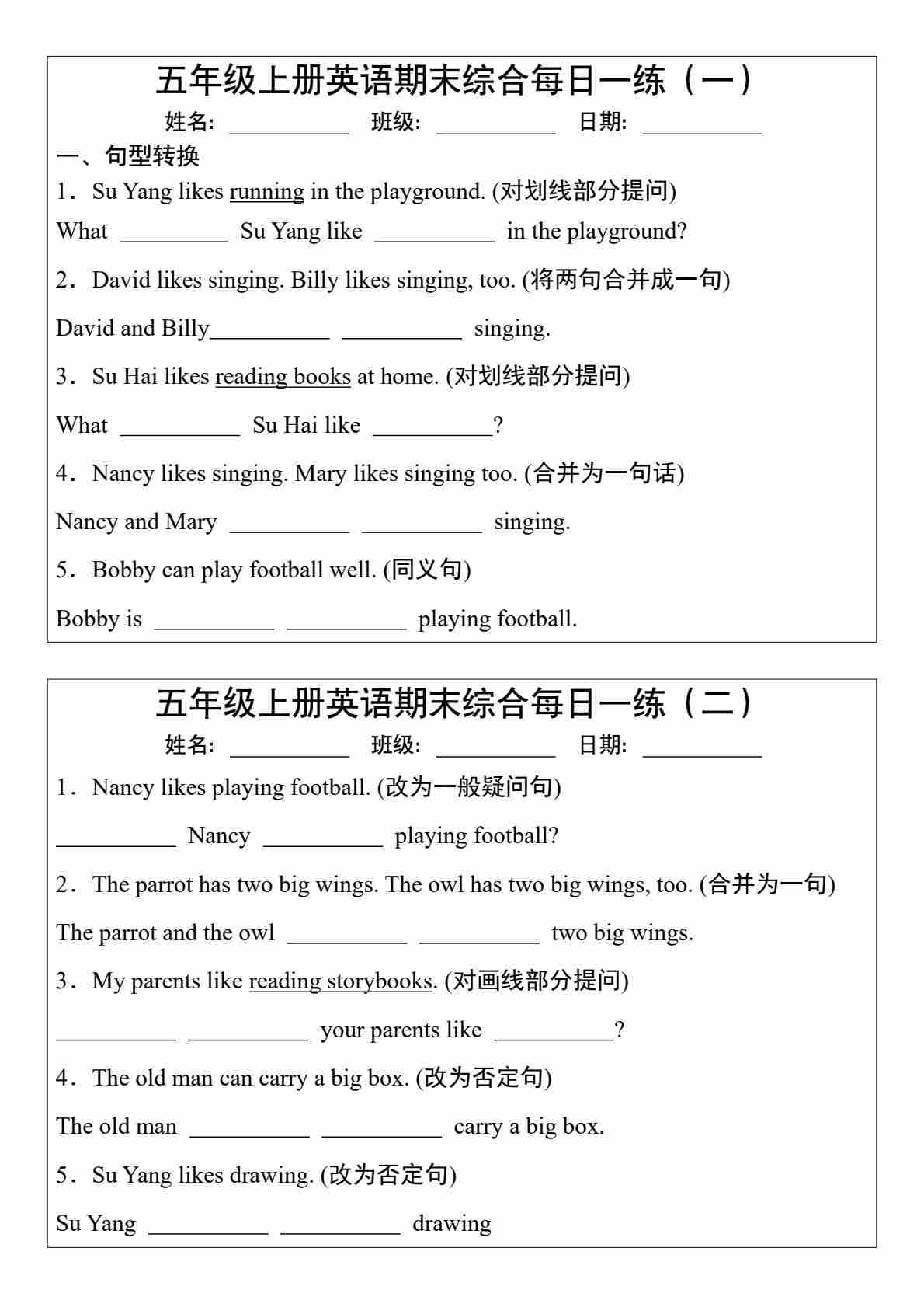 《五年级英语上册句型转换期末综合每日一练》译林版