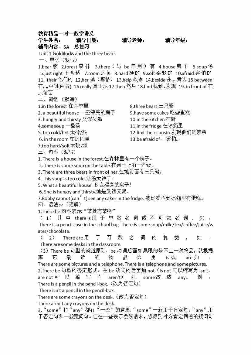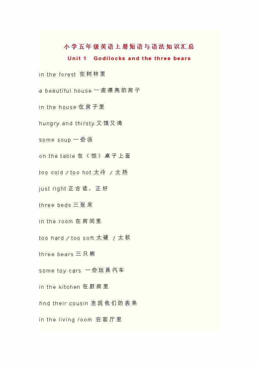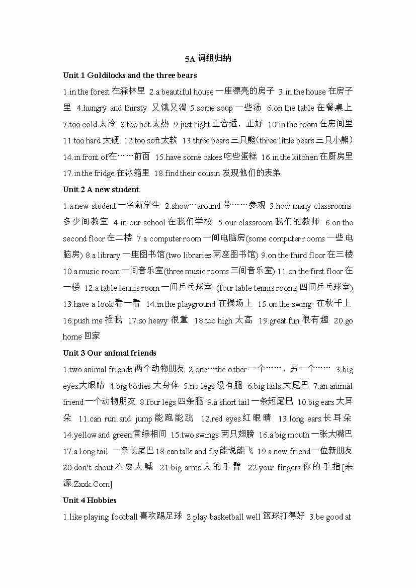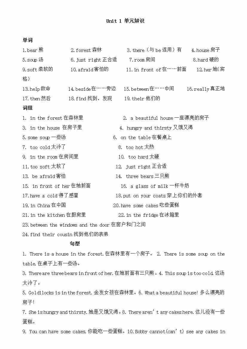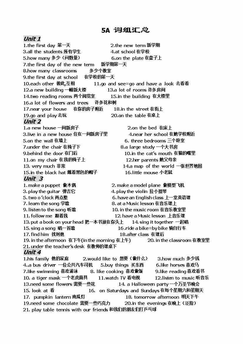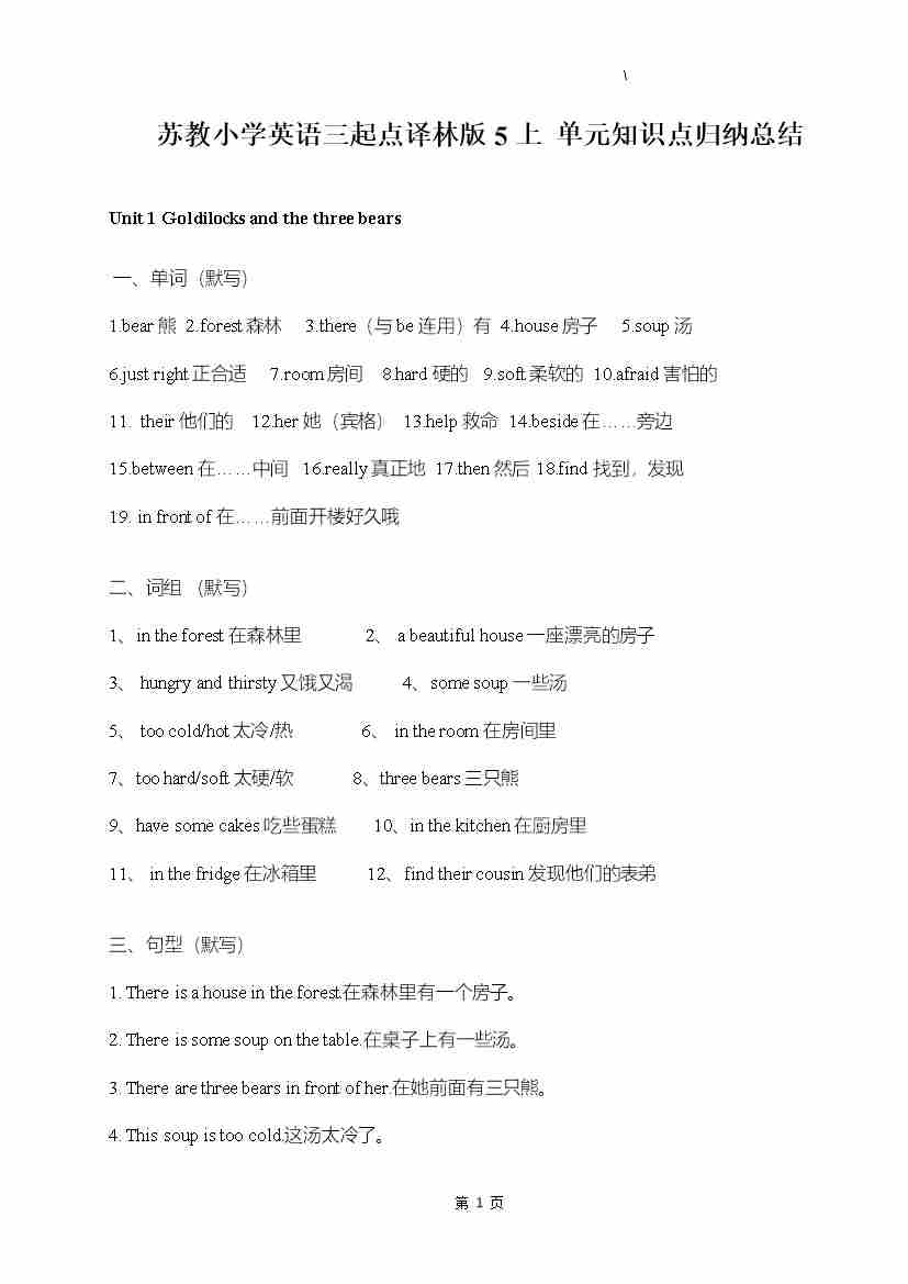 苏教小学英语三起点译林版5上 单元知识点归纳总结