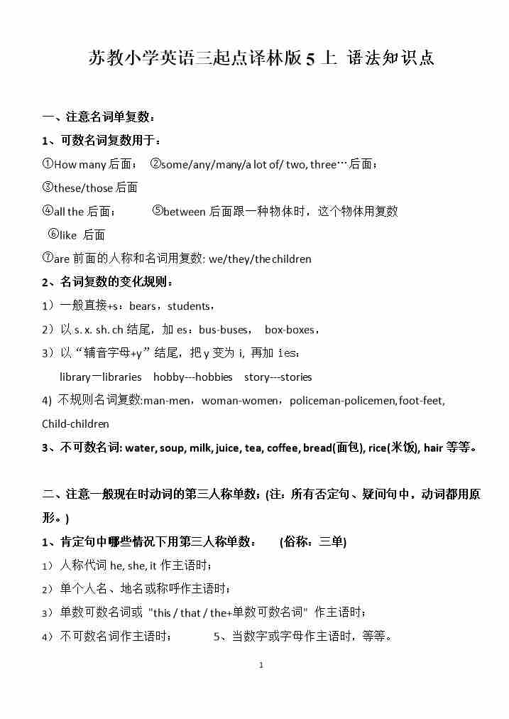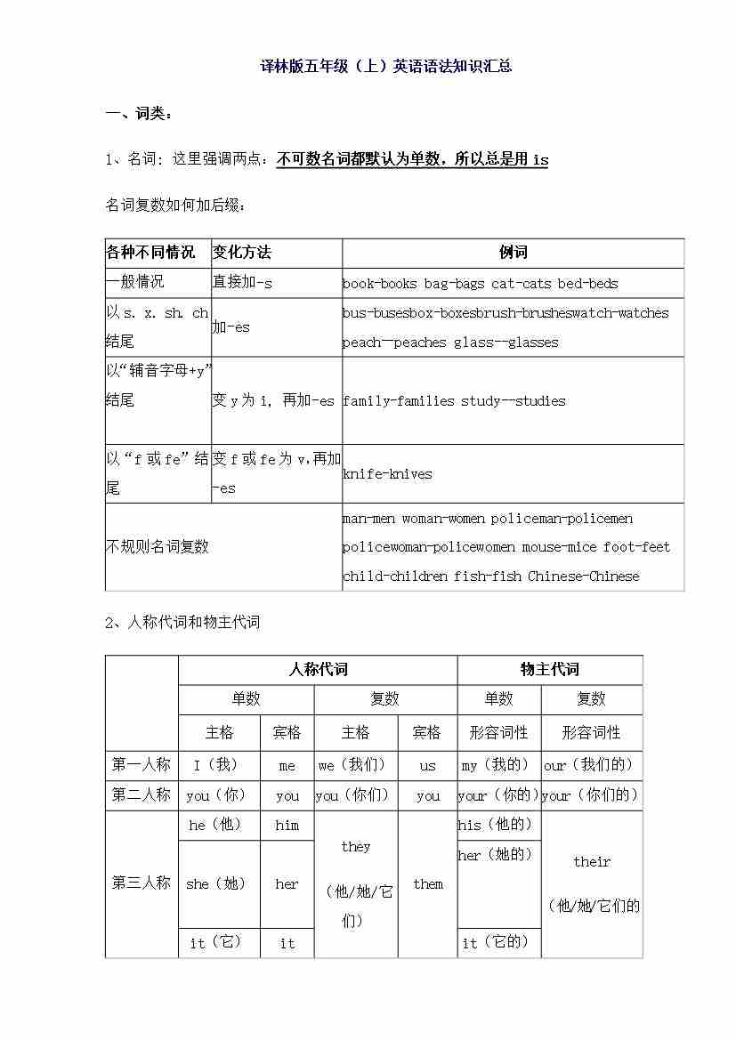 语法知识汇总-译林版(三起)五年级上册 (1)