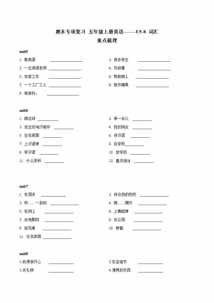 译林版五上重点单词+短语+句子默写小纸条【空白】