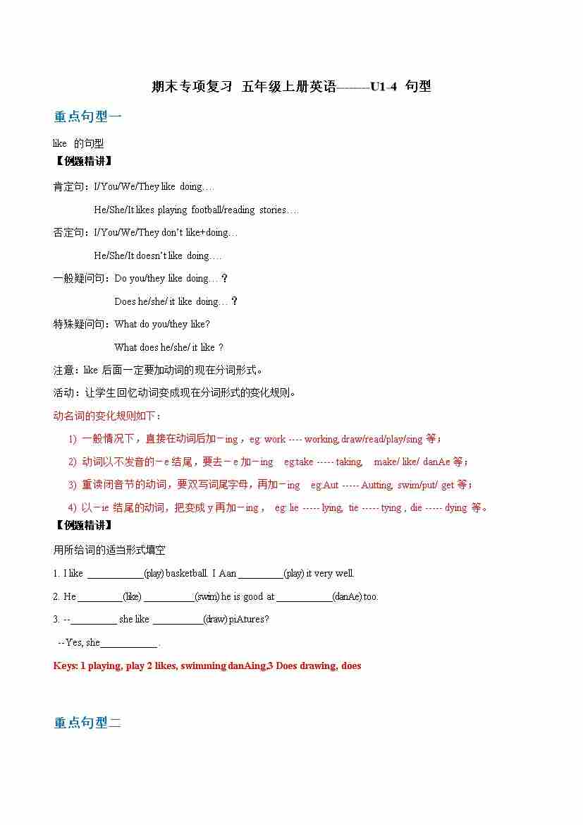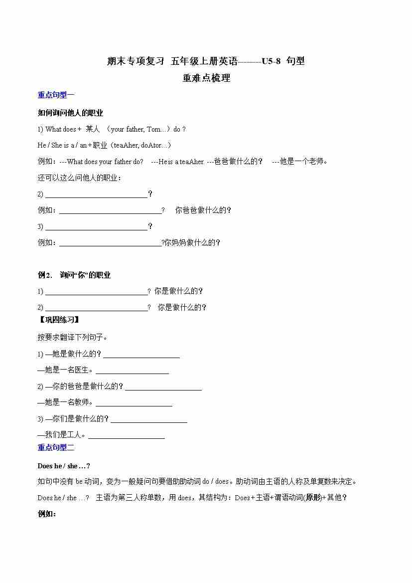 专题04 U5-8句型-五年级英语上册寒假专项提升(教师版)(译林版三起)