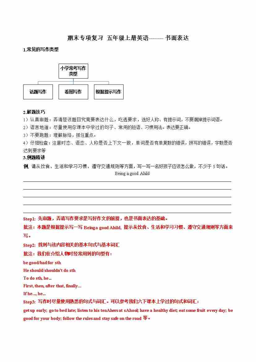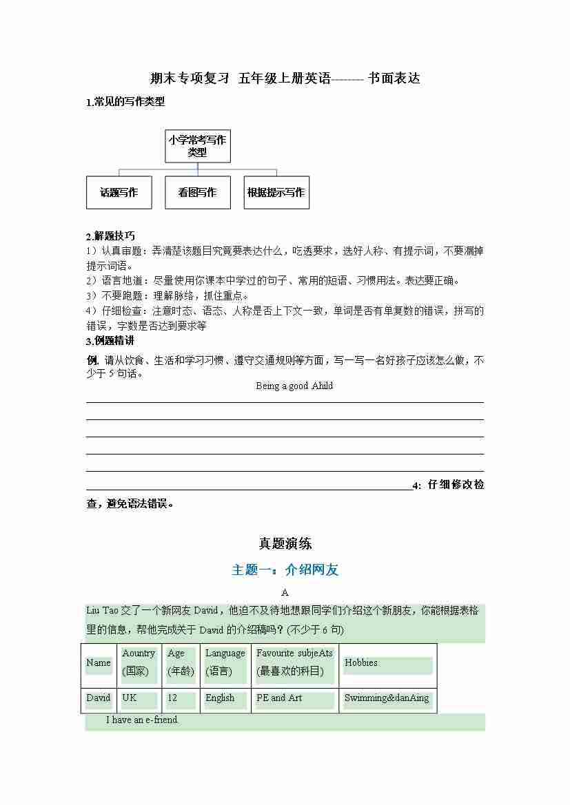 专题06 书面表达-五年级英语上册寒假专项提升(教师版)(译林版三起)