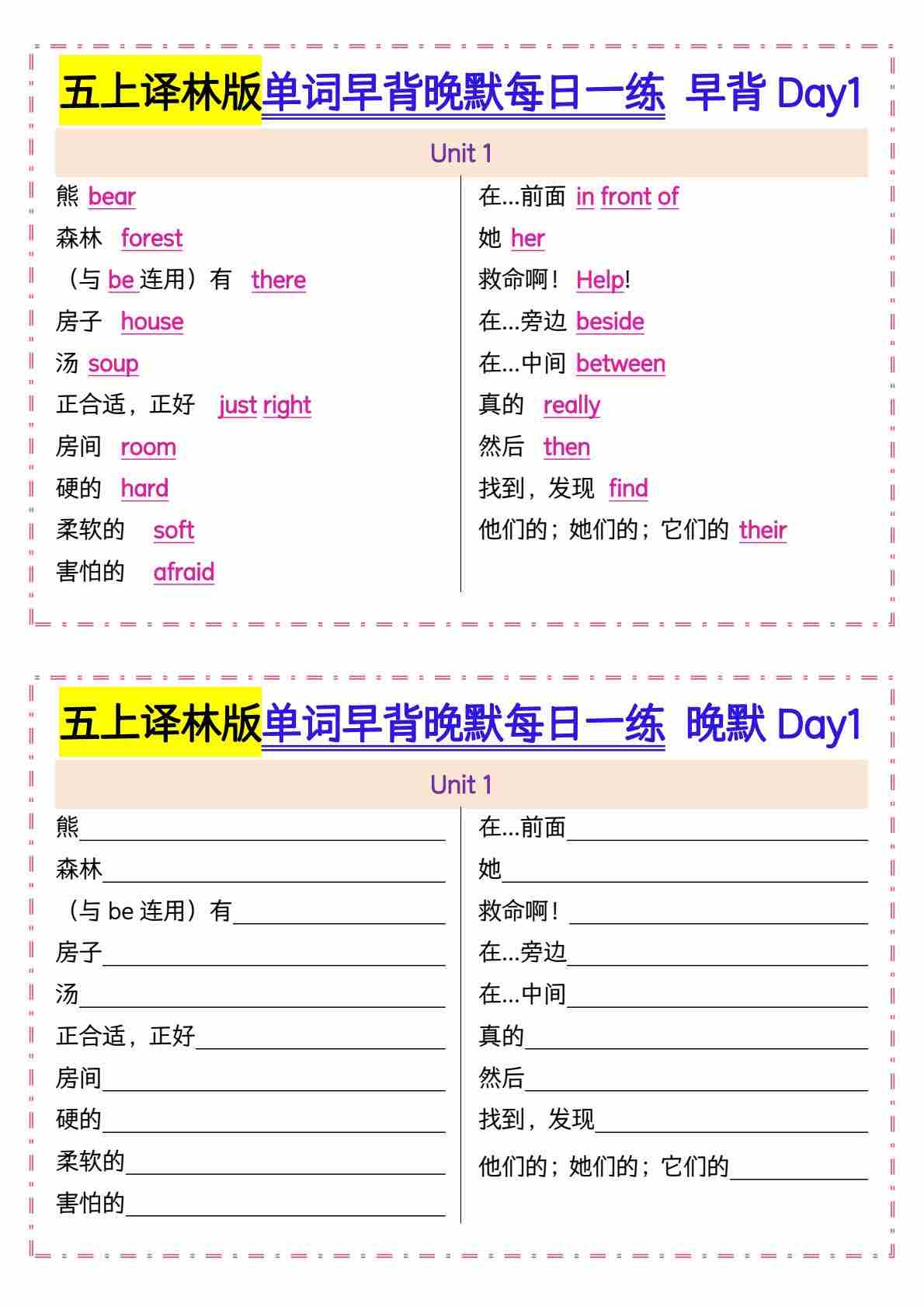 五上译林版单词早背晚默每日一练