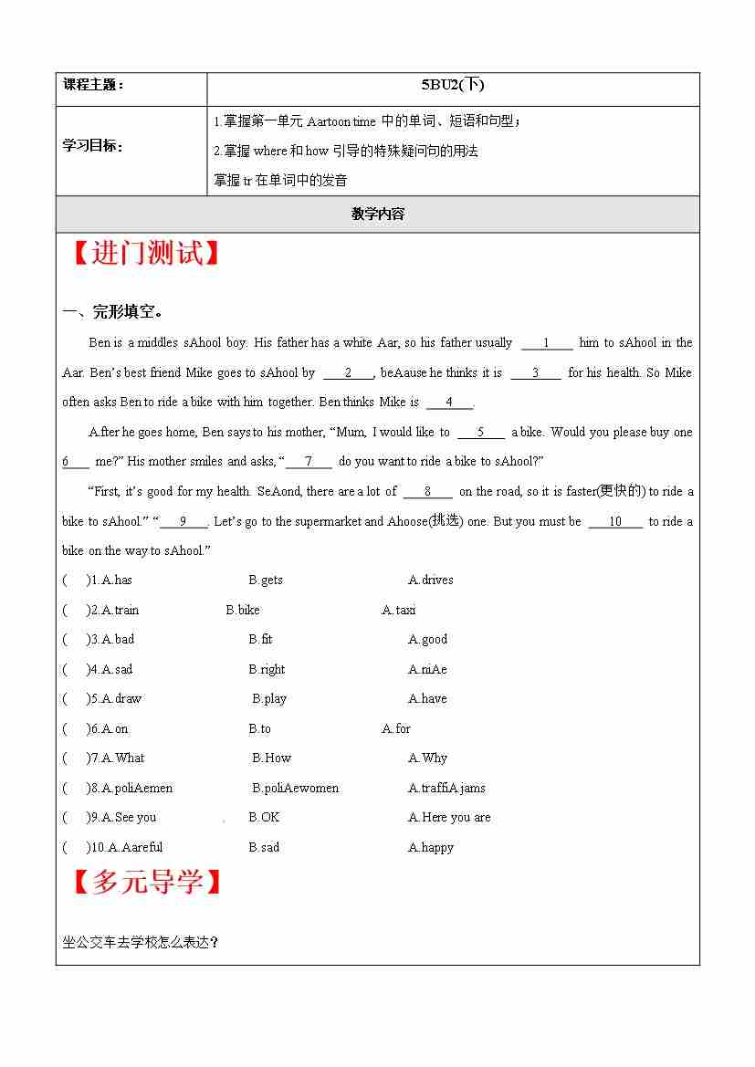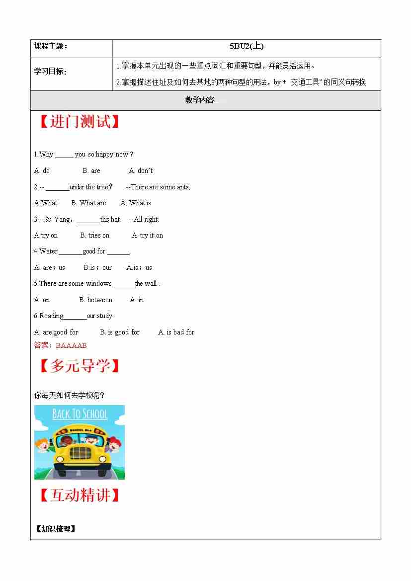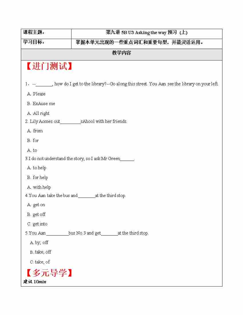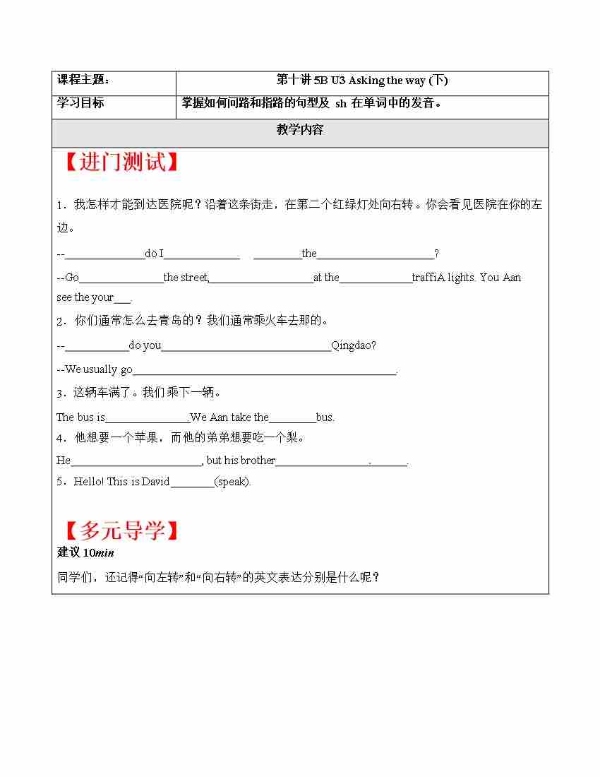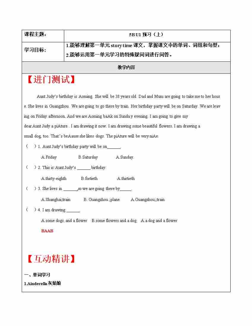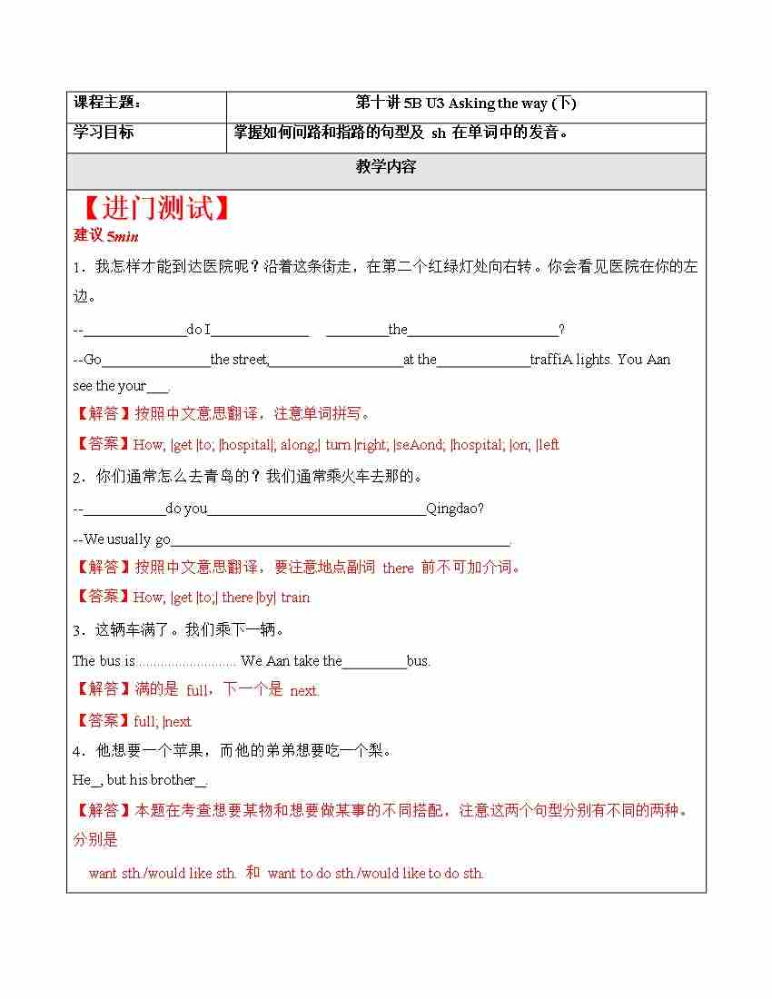 五年级英语寒假讲义第10讲 5BU3预习下(教师版) 译林版(三起)