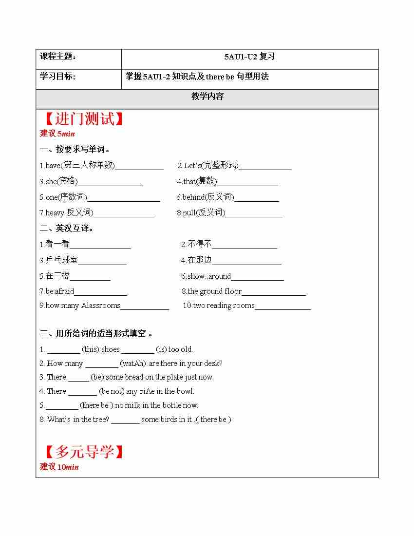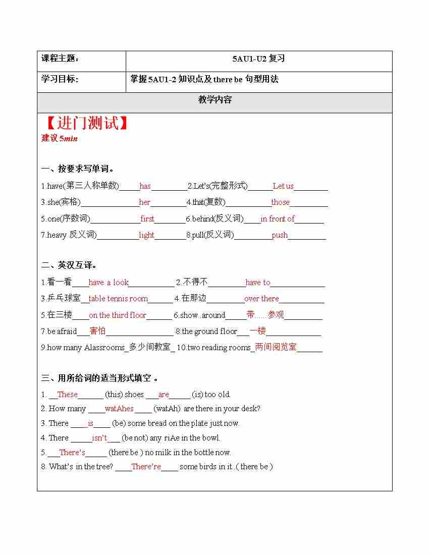 五年级英语寒假讲义第1讲 5A U1-U2复习 (教师版) 译林版(三起)