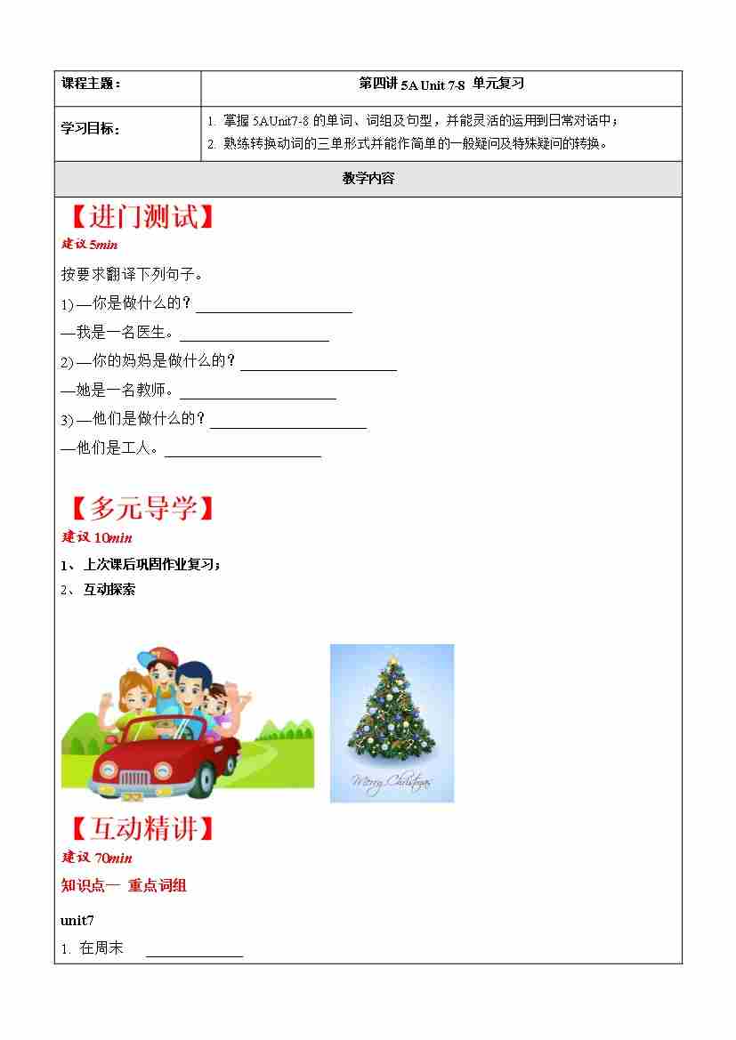 五年级英语寒假讲义第4讲 5AU7-U8(教师版) 译林版(三起)