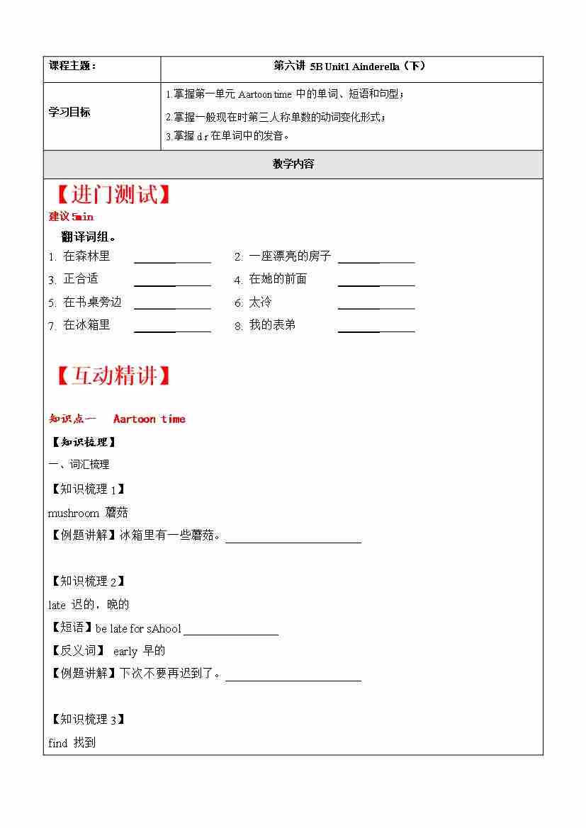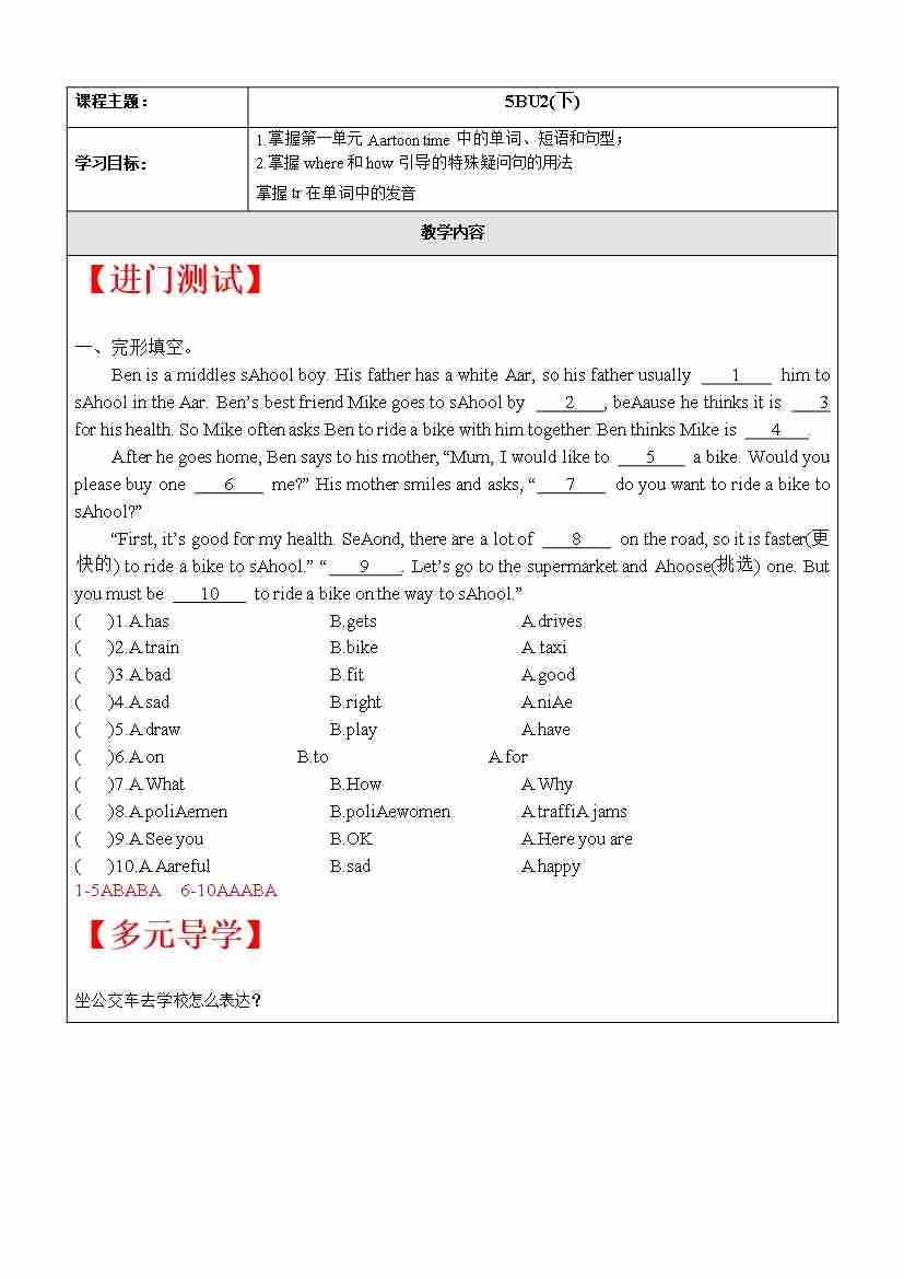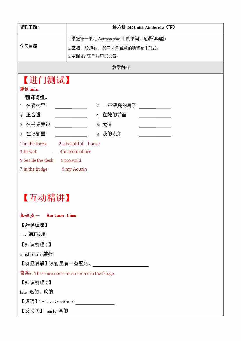 五年级英语寒假讲义第6讲 5B Unit 1(下)(教师版) 译林版(三起)